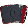 El acordeón SM-3412 de SofiaMari tiene 34 botones y 12 botones de bajos con 3 cambios de tono, cojín de lujo y doble fuelle con broches.Incluye un estuche duro y correas de cuero.