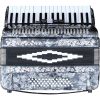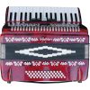 El piano-acordeón SM-3448 de SofiaMari tiene 34 teclas con 48 botones y cinco efectos de trémulo. Los botones de bajos proporcionan contrabajo, bajo, acordes mayores y acordes menores. El acordeón SM-3448 cuenta con un patrón de diamantes de imitación, correa de lujo y fuelle protector. Incluye estuche.