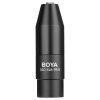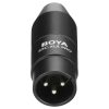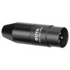 Este adaptador te permite conectar tu jack de micrófono estándar TRS (3 pines) de 3.5 mm a un conector XLR estándar de 3 pines en tu videocámara, grabadora, mezcladora, etc. Convierte 12-48 V de potencia phantom (XLR/macho) a 3-5 V enchufe de alimentación (3.5 mm/hembra). Cuenta con conectores blindados chapados en oro para una transferencia de señal sin interferencias. Fabricado en aluminio duradero, compacto y ligero.