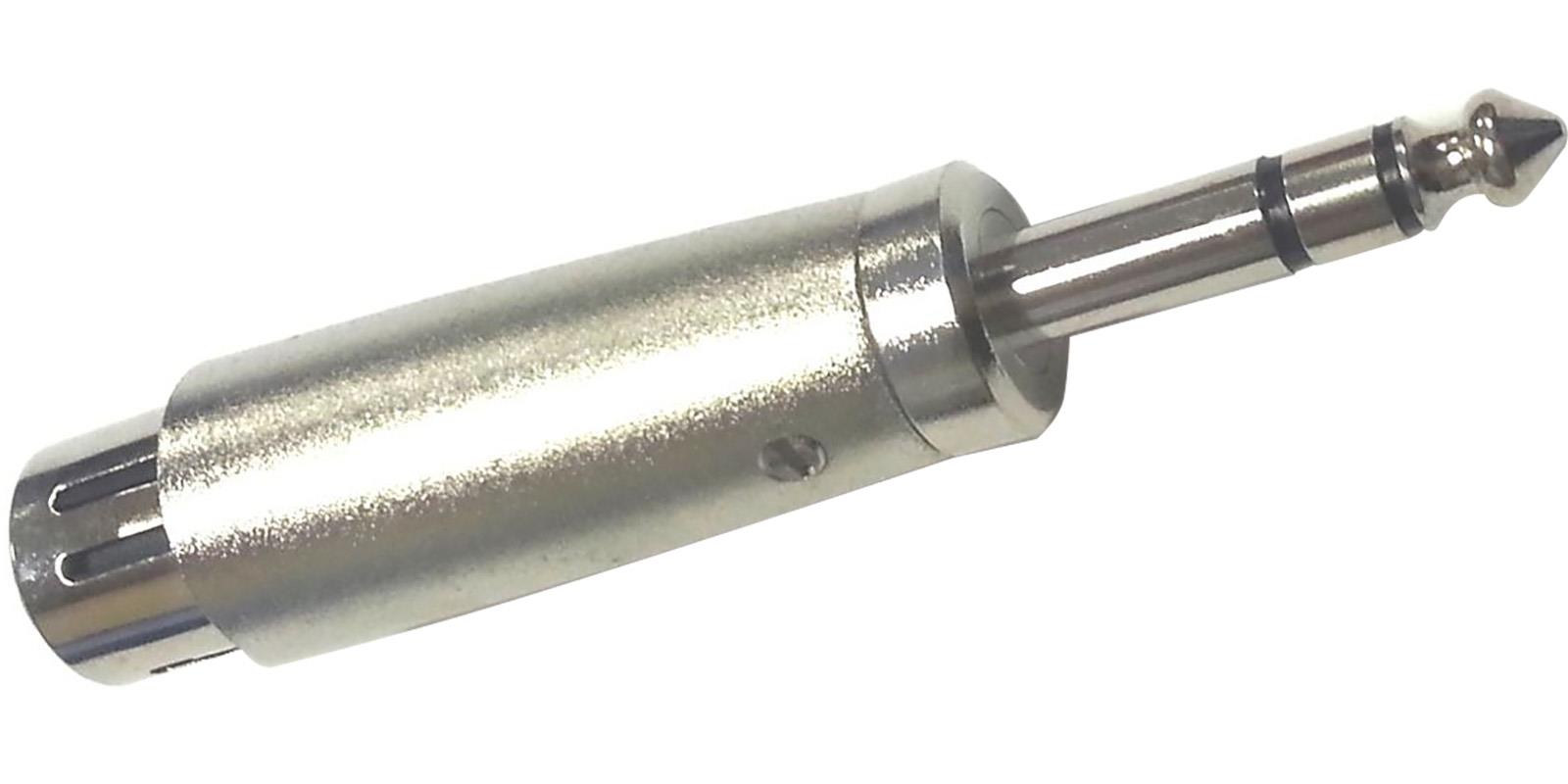 Adaptador metálico de XLR hembra de 3 polos a jack estéreo macho de 6.3 mm.