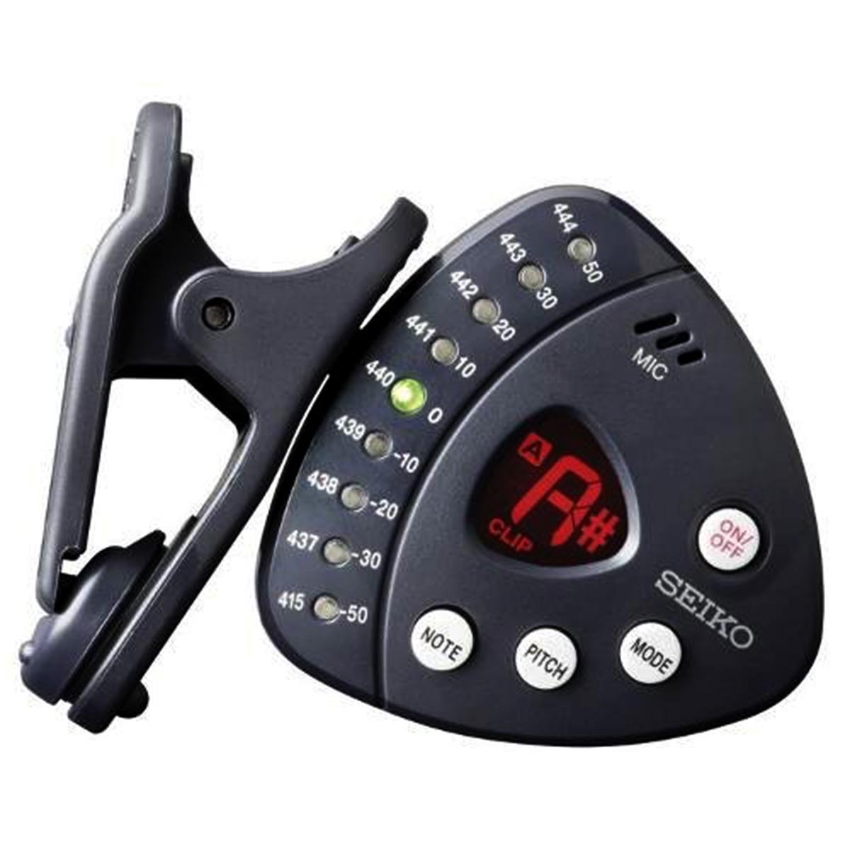 Afinador con pantalla e indicadores LED brillantes para una fácil afinación, tono de referencia de una octava para afinar por oído, ángulo de visión totalmente ajustable, la pantalla se inclina 90° hacia arriba y gira 360° haciendo al afinador visible desde cualquier dirección, método de entrada seleccionable, sensor de vibración/micrófono para afinar cualquier instrumento en cualquier entorno, ideal para principiantes o profesionales, afina en modo automático o manual, rango de afinación: A0 – C8, micrófono y sensor de vibración integrados, pitch shift: A4=415, 437 – 444 Hz, dimensiones: 55 × 67 × 50 mm, peso: 50 g (incluyendo baterías).
