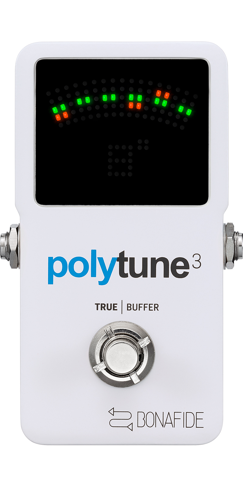 El Polytune 3 cuenta con nuestro Buffer BonaFide patentado. Un búfer análogo de alta calidad, que combate la succión del sonido cuando se utilizan largos recorridos de cable o complejas configuraciones de pedales. Dado que un búfer es usualmente colocado al principio de la cadena de señal, justo como tu afinador, pensamos que era una obviedad combinar los dos en un solo paquete compacto.