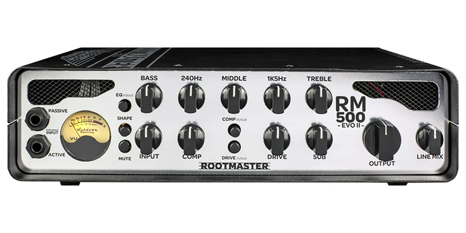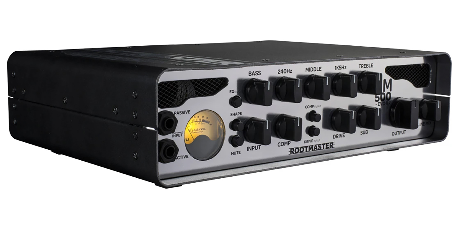 El preamplificador de la serie Rootmaster EVO ahora incluye un jack de entrada activa y pasiva para usar con instrumentos de salida alta y baja. Los controles de tono rotativo de cinco bandas actúan con precisión quirúrgica para proporcionar un control total sobre tu sonido, mientras que un switch de shape lo conecta instantáneamente a un ajuste de tono clásico de Ashdown, directamente desde el mundialmente famoso ABM.