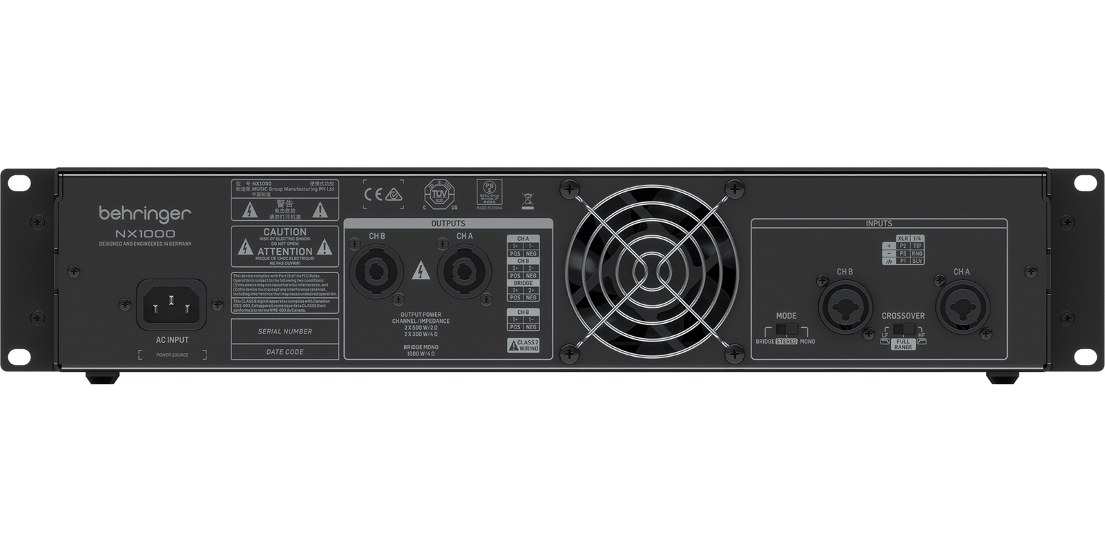 Entradas: 2 jacks combo.Impedancia de entrada: 10 kilo-ohms desbalanceado / 20 kilo-ohms balanceado.Salidas: 2 conectores profesionales de altavoz locking-style.Tipo de circuito de salida: Clase D.Distorsión: 155 @ 8 ohms.Relación señal a ruido: >100 dB.