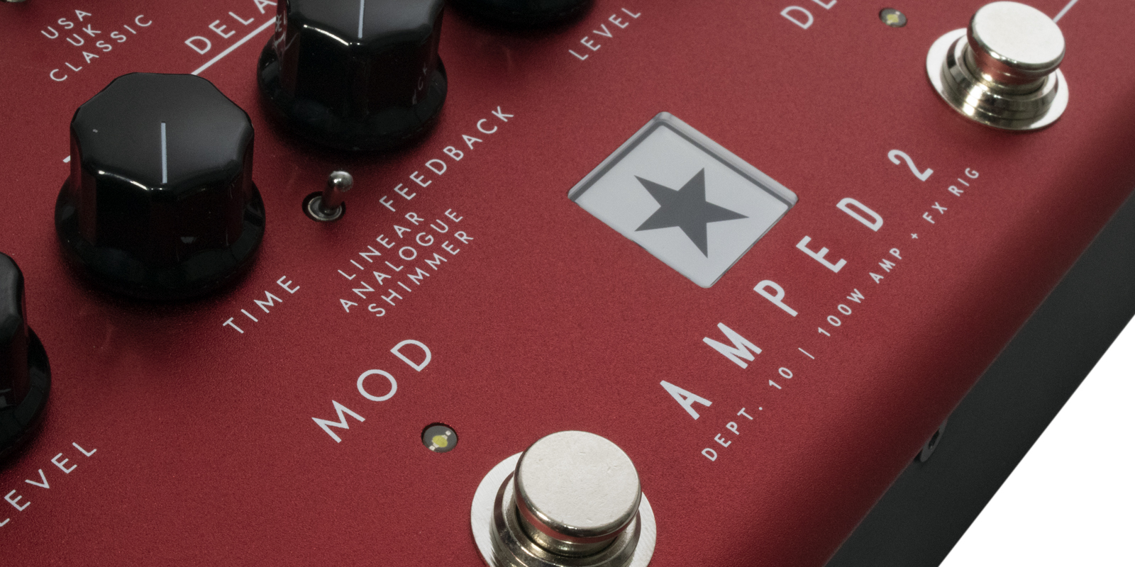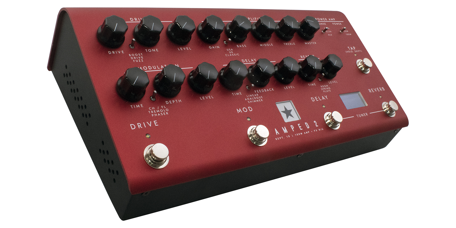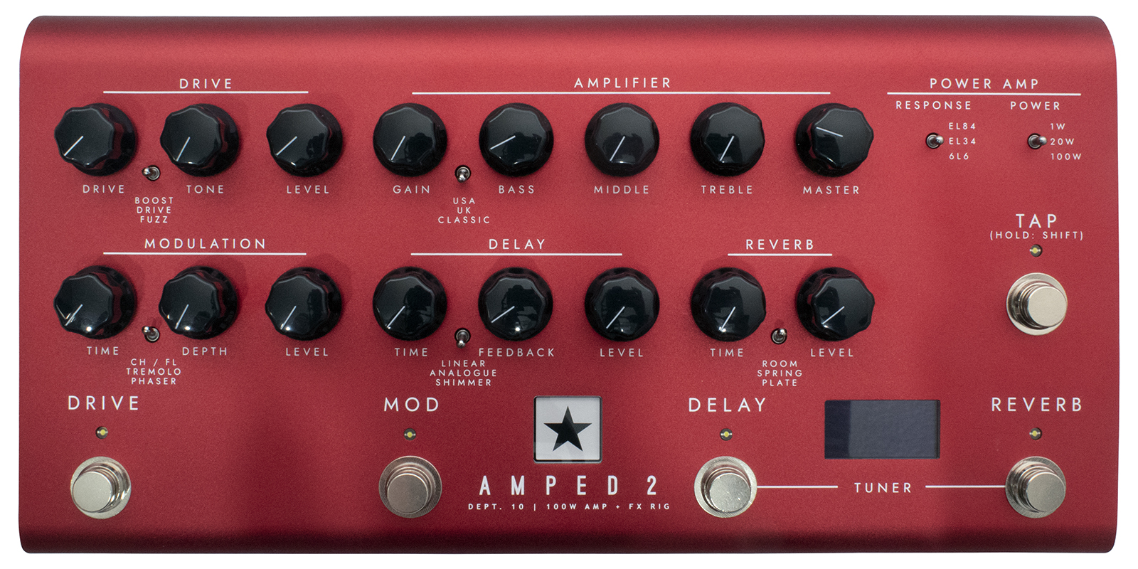 Drive, Mod, Delay, Reverb.