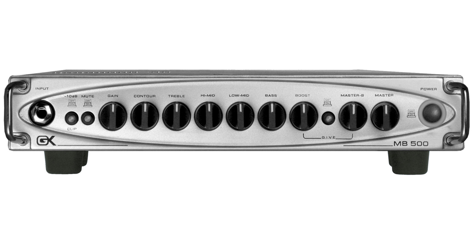 Amplificador GK p/bajo mod. MB 500. Amplificador para bajo, 500 watts a 4 ohms,350 watts a 8 ohms, pad de 10dB, EQ de 4 bandas activo con contour, salida XLR,pre/post EQ, salida speakon. loop de efectos y salida a audífonos, solo pesa 1.7kg!