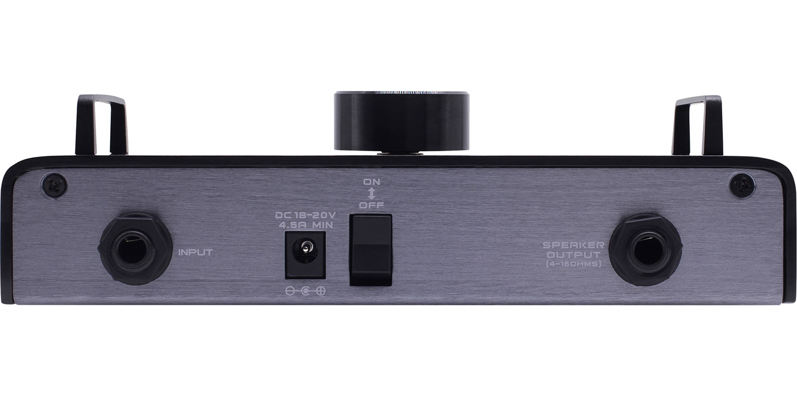 Amplificador de potencia portátil de piso para guitarra, tamaño compacto, carcasa ligera de aluminio, da volumen y voz a tus pedales de drive y modeladores de amplificador, potencia de salida de hasta 75 watts, compatible con gabinetes de diferentes impedancias que van de los 4 a los 16 ohms, tono de alta calidad con control de volumen simple, alta impedancia de entrada que mantiene su tono impecable, fuente de alimentación de 18-20 V CC (centro positivo), consumo de energía: 4.5A, dimensiones: 190 × 118.5 × 53.5 mm, peso: 590 g.