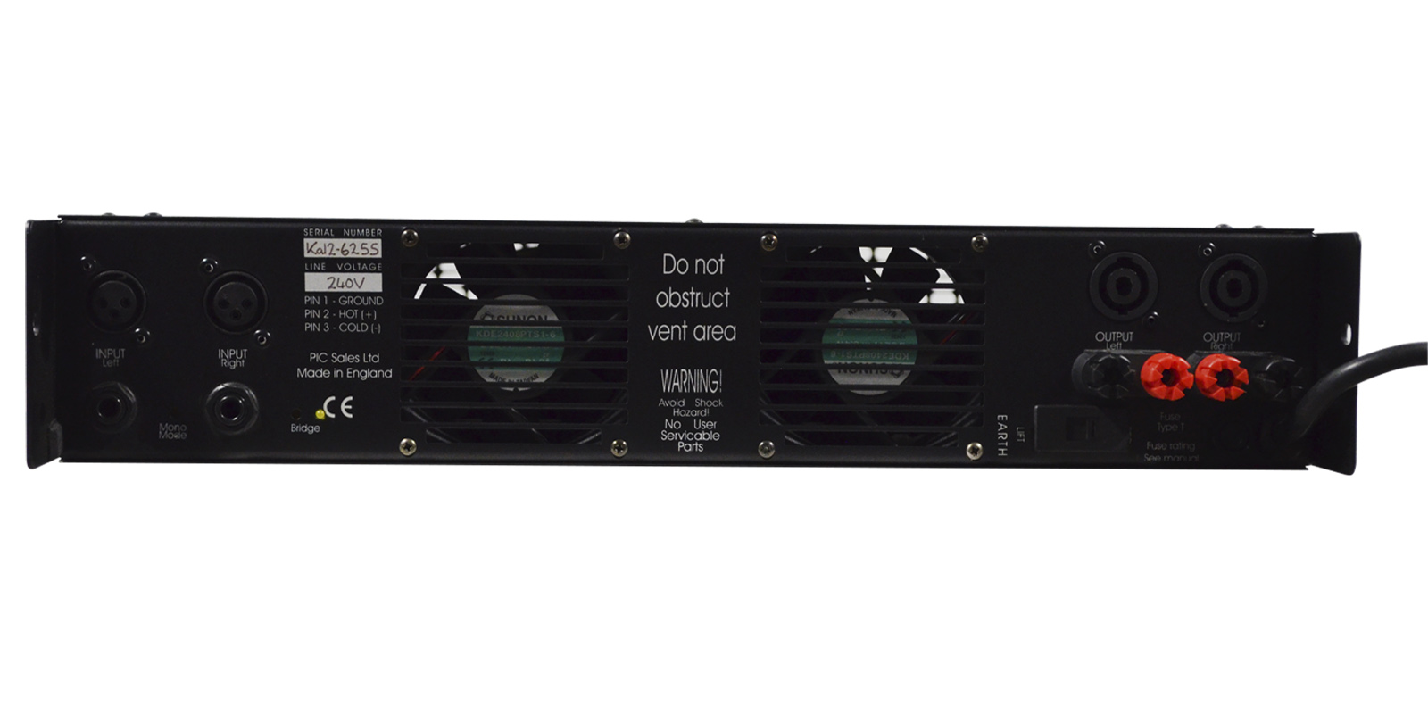 El amplificador de potencia de la serie KA de PSL cuenta con una potencia de 1200 watts, 600 watts por canal a 4 ohms y 375 watts por canal a 8 ohms, fuentes gemelas de alimentación toroidal para una perfecta estabilidad. Ofrece un sonido nítido y claro. La mejor marca de audio en el mercado. Fabricado en Inglaterra.