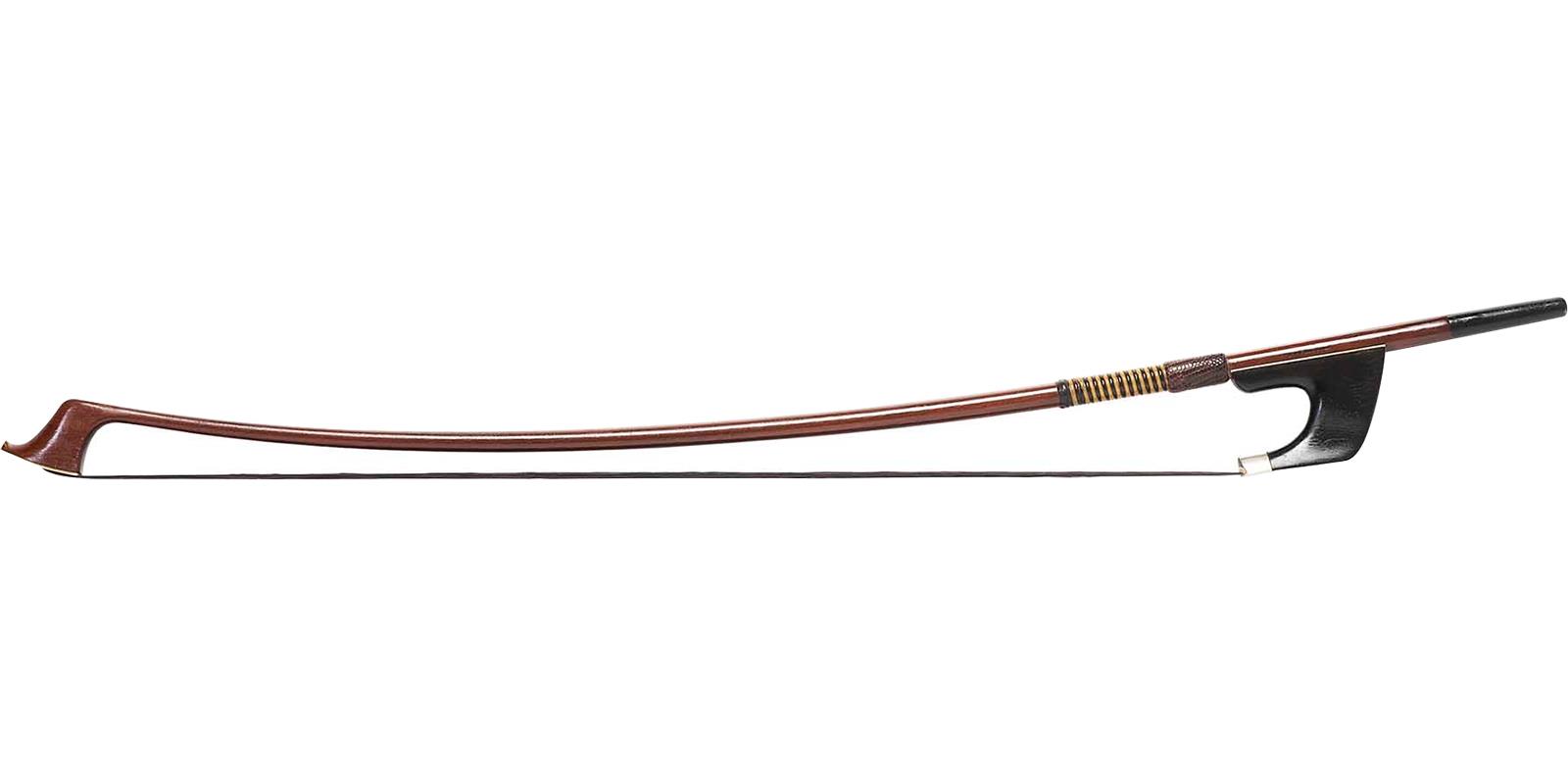 El arco de 4/4 para contrabajo, está fabricado con hardwood y crin de caballo con el sistema Alemán, que se sujeta con la palma hacia afuera y el pulgar a la derecha, sin apretar.