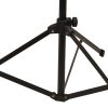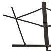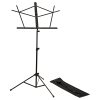 Este atril plegable para partituras cuenta con librero desmontable. El conjunto de patas se fija en su lugar con un mecanismo de bloqueo e incluye una funda de transporte.