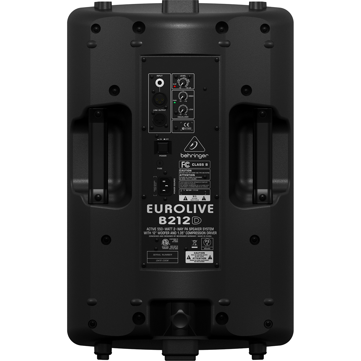 Bafle activo de 2 vías de la serie Eurolive, potencia de 550 watts, woofer de 12” pulgadas, ideal para refuerzo sonoro, aplicaciones en vivo y reproducción, sistema ultra compacto y ligero, excelente sonido incluso a niveles extremos de presión acústica, tecnología de amplificador Clase D que ofrece gran potencia, funcionamiento sónico increíble y peso súper ligero, fuente de alimentación conmutada interna para audio sin ruidos, respuesta transitoria superior y muy bajo consumo de energía, procesador de sonido integrado para el control definitivo del sistema y la protección del altavoz, graves increíblemente profundos, driver de compresión de diafragma de aluminio de 1.35” pulgadas de última generación que ofrece una reproducción excepcional de alta frecuencia, dispersión ultra amplia, trompeta exponencial/cónica de gran formato, entrada Mic/Line de ruido ultra bajo con control de volumen y LED de clip, ecualizador dedicado de 2 bandas para un perfecto ajuste del sonido, salida de línea adicional que permite la conexión de sistemas de altavoces adicionales, diseño de gabinete trapezoidal que permite diferentes posiciones: montaje en soporte con polo de 35 mm o inclinado en el costado para ser usado como monitor de piso, mango ergonómico para un fácil transporte y configuración dimensiones: 550 x 345 x 270 mm, peso: 14.5 kg.