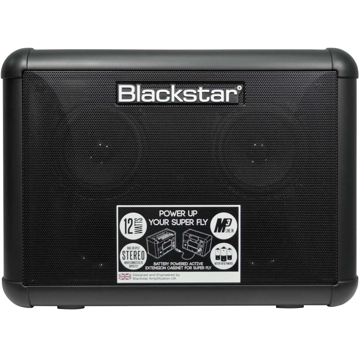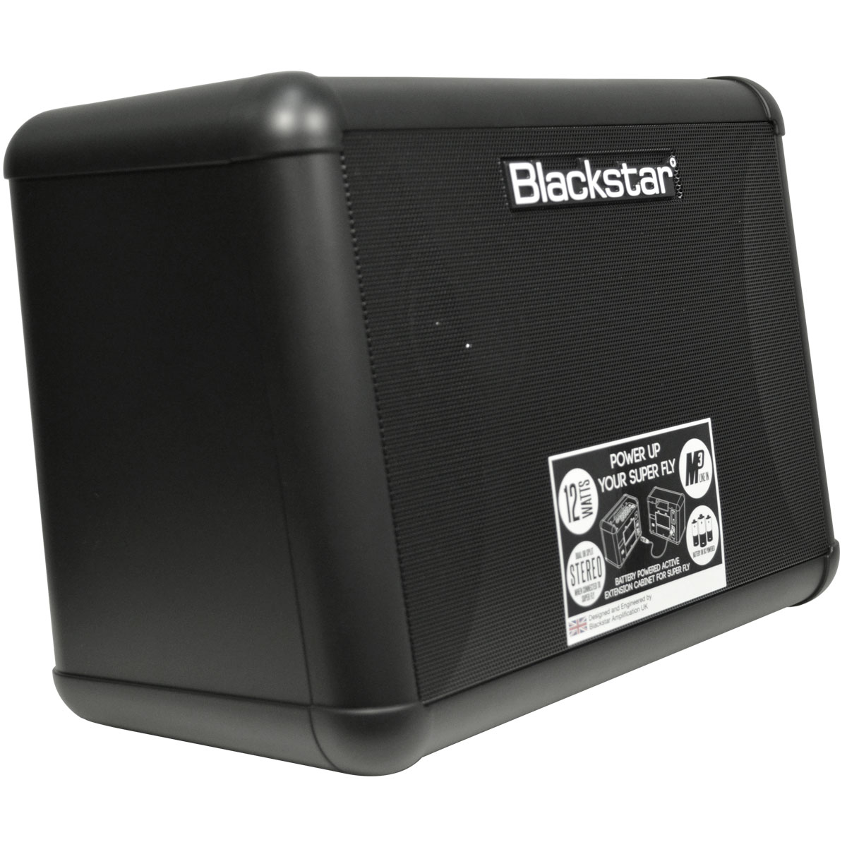 Gabinete de extensión para el modelo SUPER FLY, 12 watts RMS, 2 altavoces de 3”, hace al SUPER FLY una configuración estéreo de 24 watts, estéreo dual o dividido cuando se conecta a SUPER FLY, mp3 / line in para uso como gabinete con alimentación, base inclinable soporte integrado, batería o red principal.