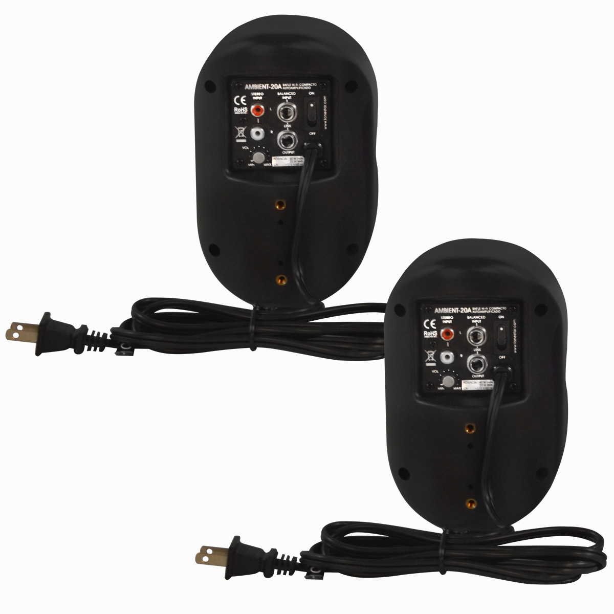 Par de bafles Hi-Fi compactos auto amplificados.Ambos bafles activos con amplificador.Amplificador clase-D de alta eficiencia.Altavoz de imán blindado.Sistema de refuerzo en graves bass réflex.