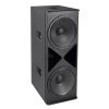 Tipo: 2 woofers de 18” pulgadas (460 mm) y bobina móvil de 3” pulgadas (75 mm) VC.Cono: Alta rigidez, repelente al agua.