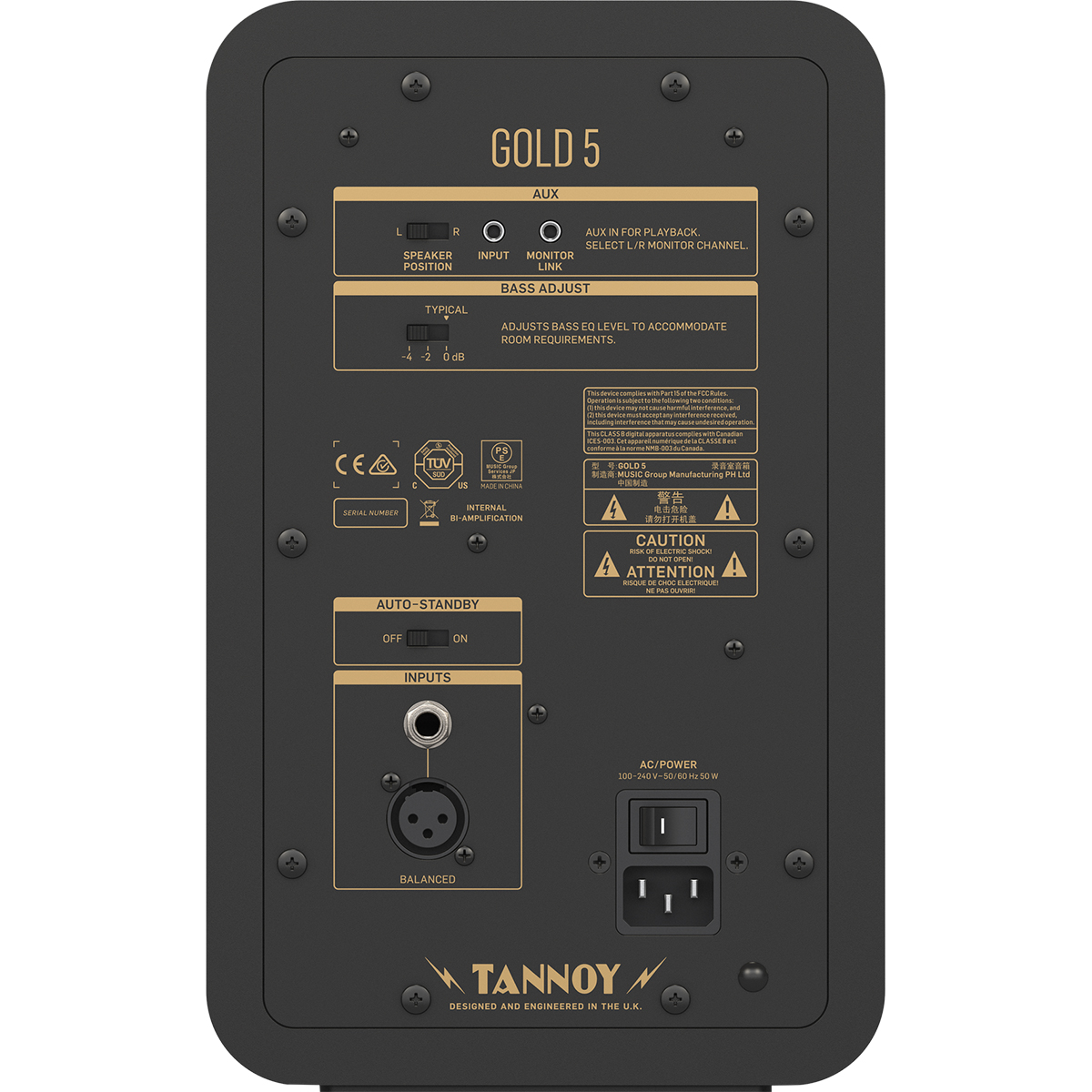 Power On/Off, Input trim, HF trim, Bass adjustment, Auto-Stand.By On/Off.