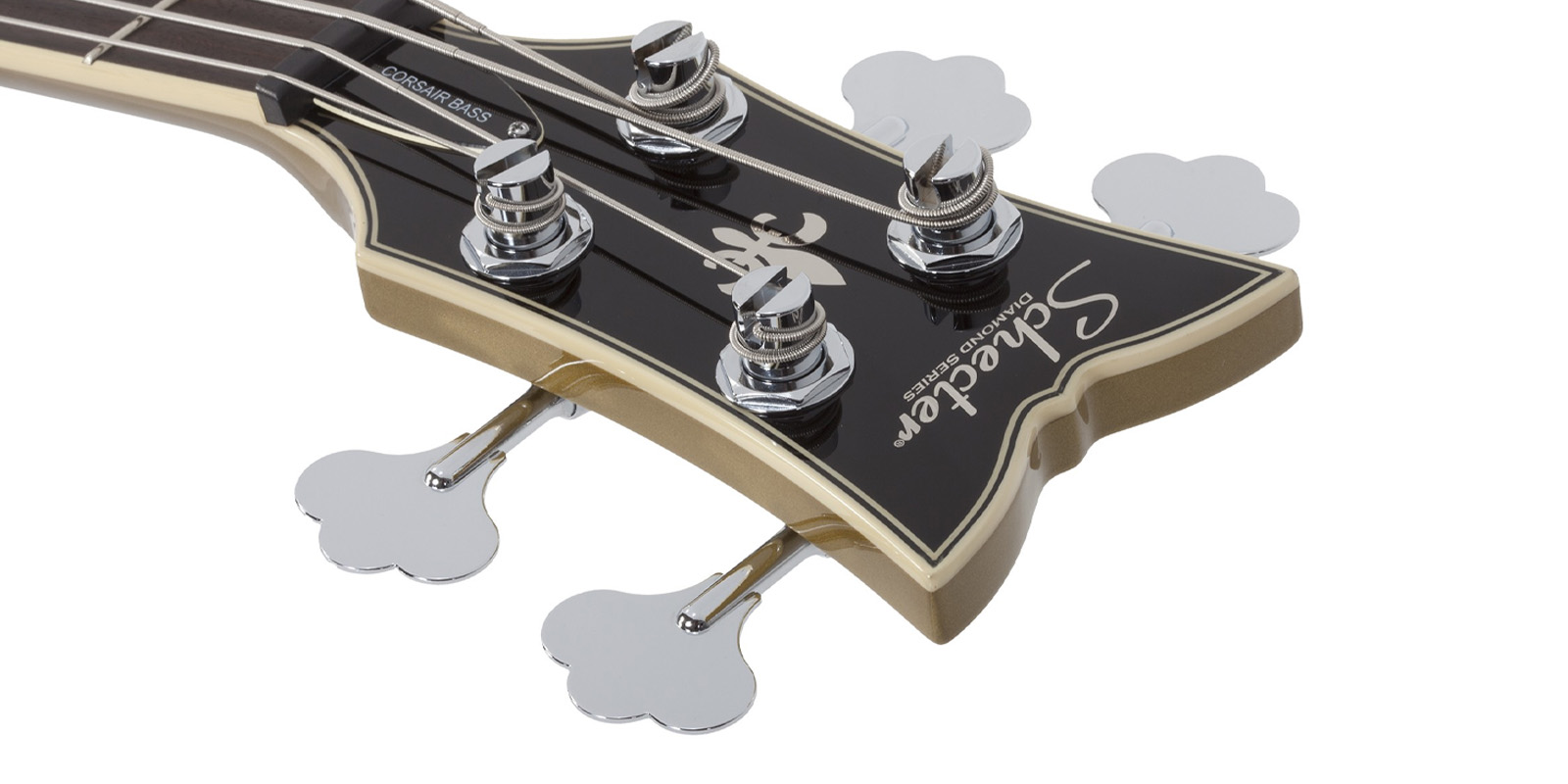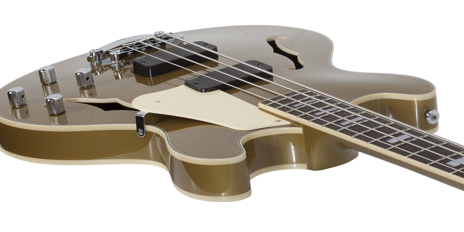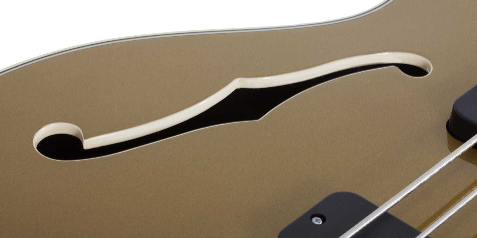 Bajo eléctrico de cuerpo semihueco Corsair. El Corsair Bass cuenta con un cuerpo de arce arqueado con orificios F clásicos listos para el escenario, golpeador y llamativos herrajes Z cromados. Un mástil de arce de 3 piezas ultra suave y jugable con diapasón de ébano hace que esos surcos sean fáciles para los dedos. Y un par de pastillas EMG TBHZ dan un tono de bajo estelar. Un puente Tune-O-Matic clásico y Tailpiece Bass brindan un gran apoyo de sostenido y afinación. Todo este atractivo para la vista se une maravillosamente con la unión crema de múltiples capas.