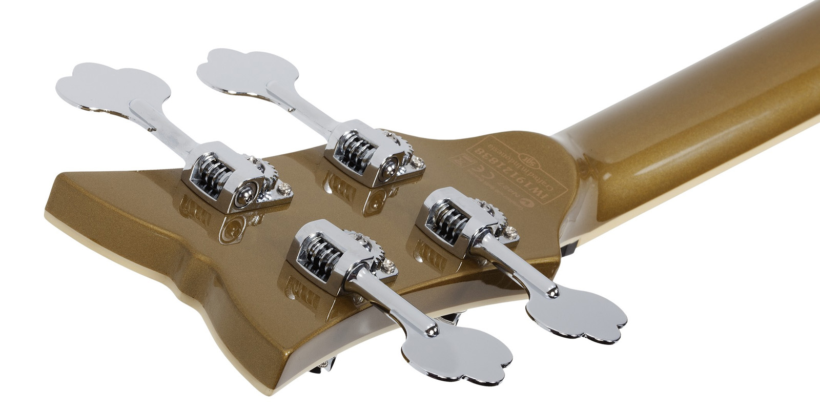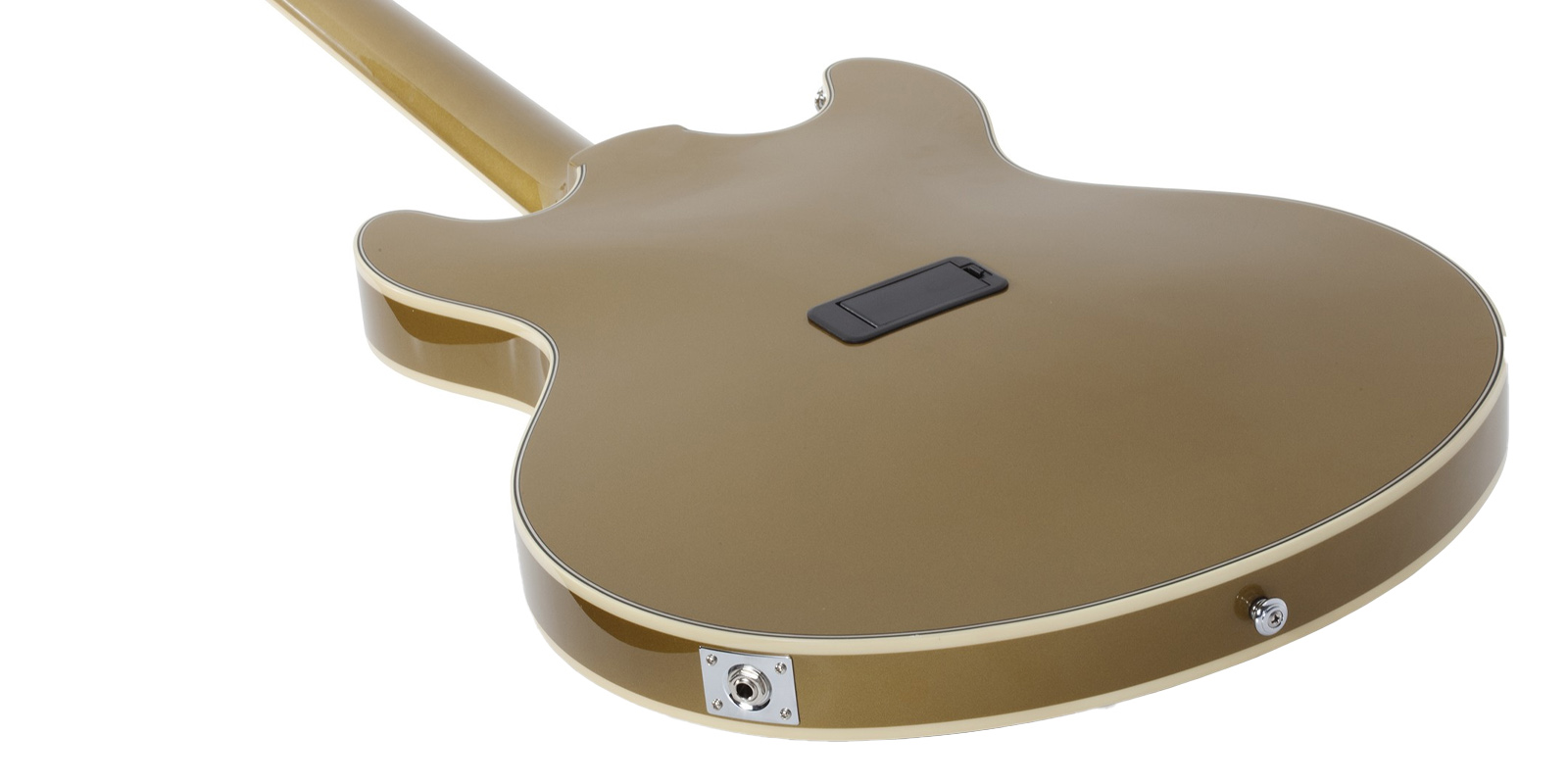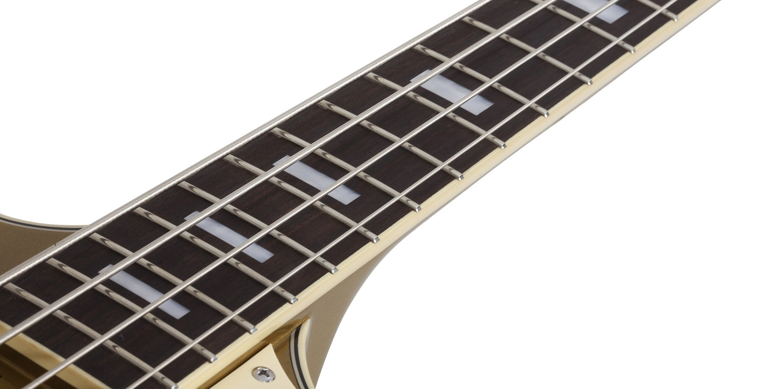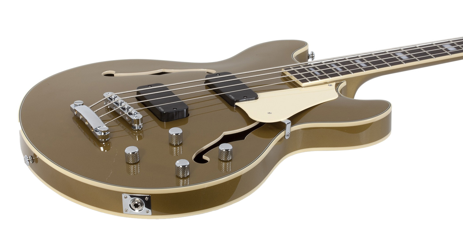 Bajo eléctrico de cuerpo semihueco Corsair. El Corsair Bass cuenta con un cuerpo de arce arqueado con orificios F clásicos listos para el escenario, golpeador y llamativos herrajes Z cromados. Un mástil de arce de 3 piezas ultra suave y jugable con diapasón de ébano hace que esos surcos sean fáciles para los dedos. Y un par de pastillas EMG TBHZ dan un tono de bajo estelar. Un puente Tune-O-Matic clásico y Tailpiece Bass brindan un gran apoyo de sostenido y afinación. Todo este atractivo para la vista se une maravillosamente con la unión crema de múltiples capas.