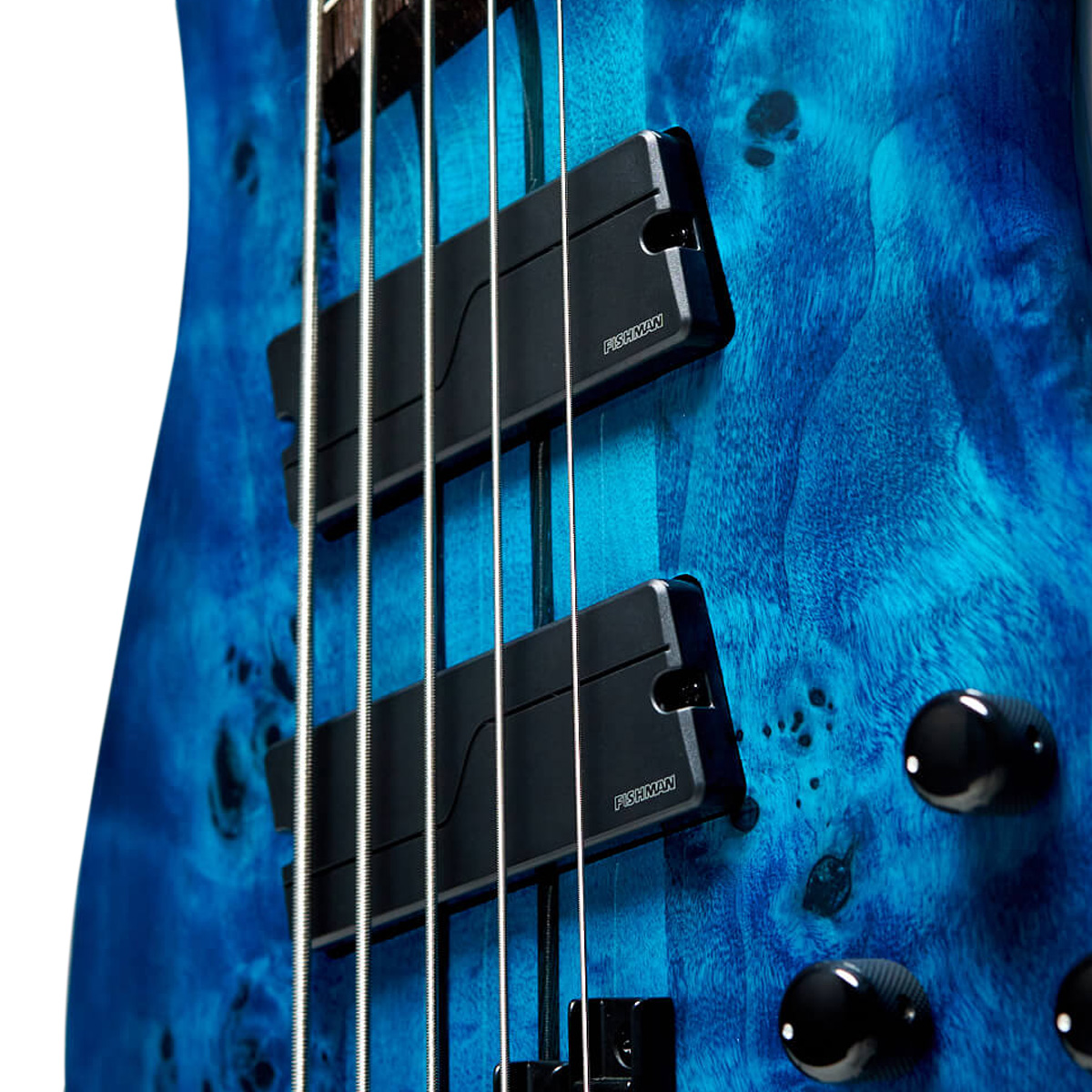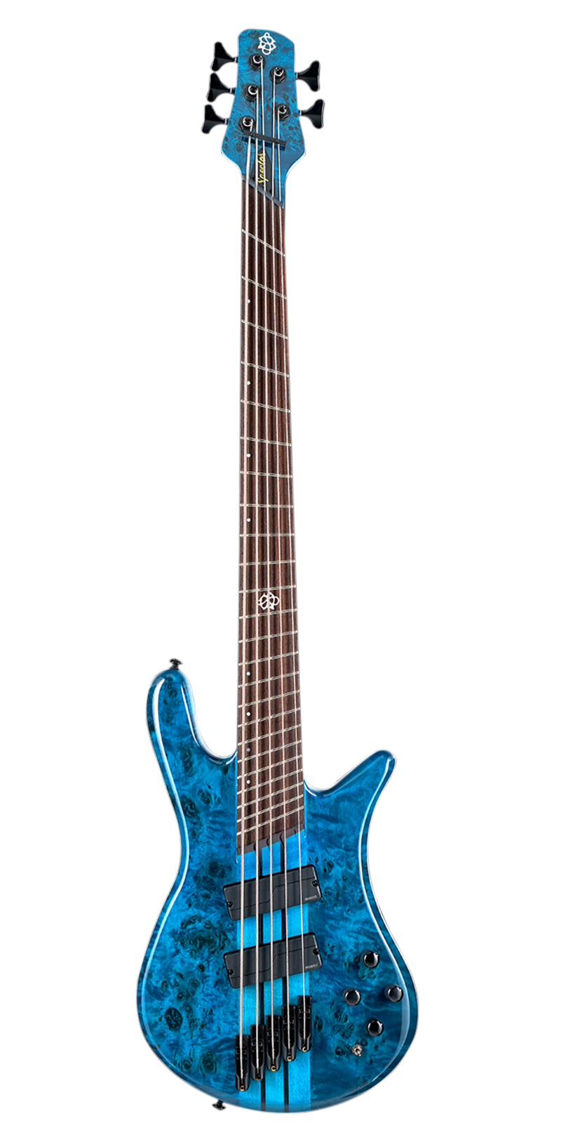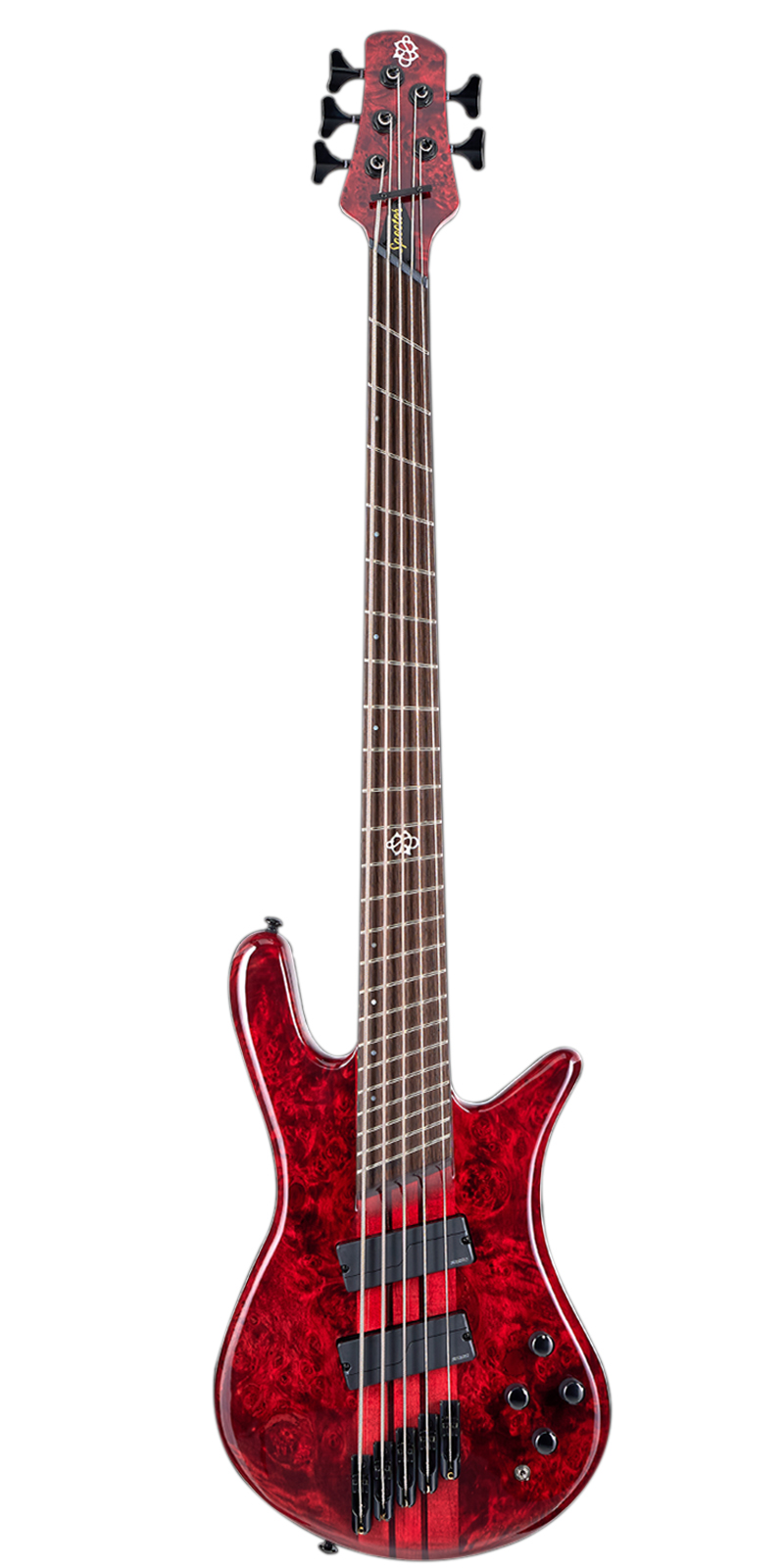 Bajo Spector NS Dimension con construcción de mástil de múltiples escalas, cuenta con una variedad de maderas tonales de primera calidad y electrónica Fishman Fluence. Cuerpo totalmente curvado tallado en ligero fresno de pantano y tapa de álamo. Mástil de 5 piezas fabricado con arce y wengué. El diapasón de wengué de 24 trastes cuenta con puntos laterales iluminantes, los bajos Spector NS Dimension están disponibles en dos colores completamente nuevos, negro y azul e Inferno Red, cada uno con un acabado de alto brillo.