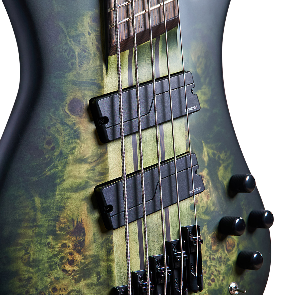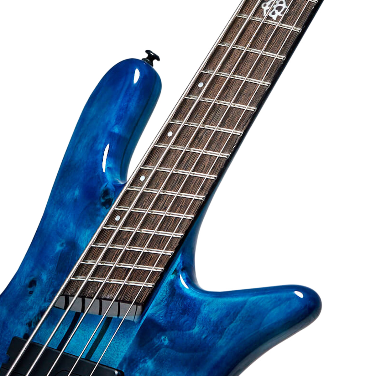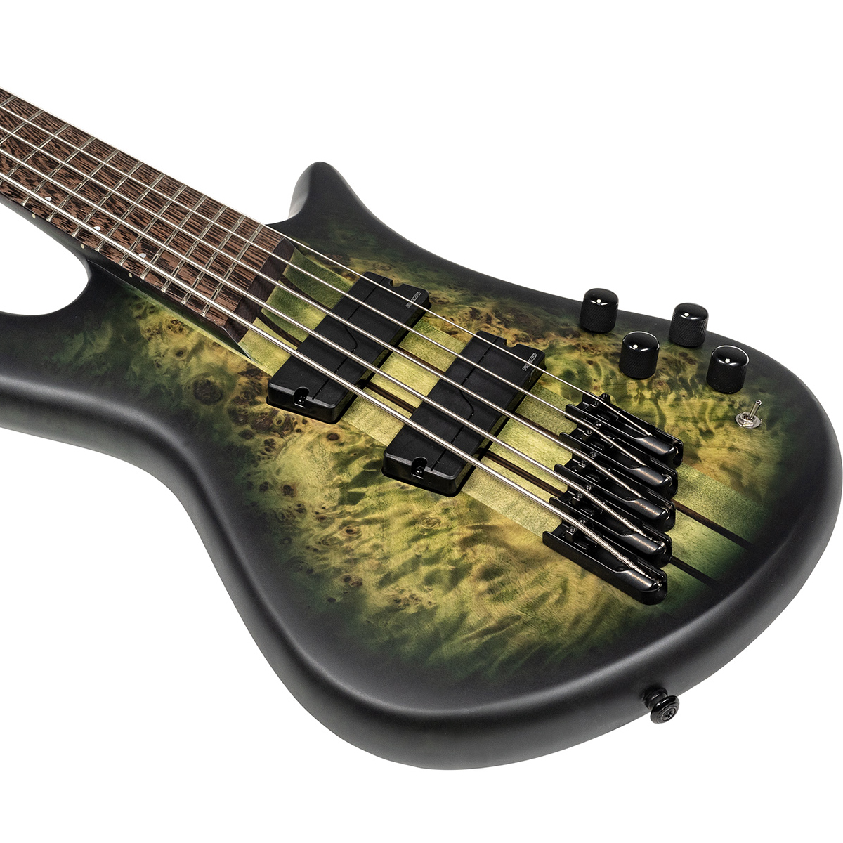 Bajo Spector NS Dimension con construcción de mástil de múltiples escalas, cuenta con una variedad de maderas tonales de primera calidad y electrónica Fishman Fluence. Cuerpo totalmente curvado tallado en ligero fresno de pantano y tapa de álamo. Mástil de 5 piezas fabricado con arce y wengué. El diapasón de wengué de 24 trastes cuenta con puntos laterales iluminantes, los bajos Spector NS Dimension están disponibles en dos colores completamente nuevos, negro y azul e Inferno Red, cada uno con un acabado de alto brillo.