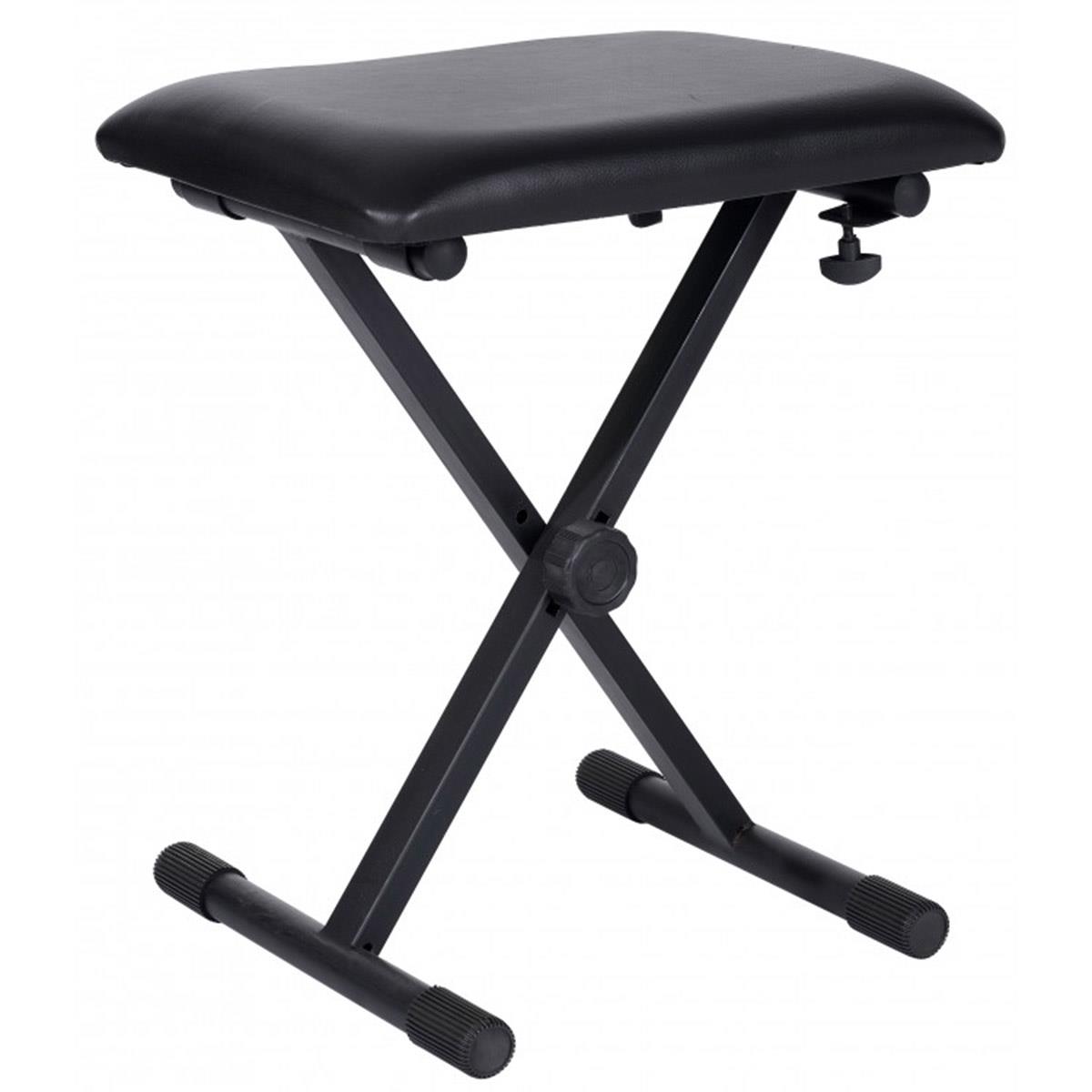Nuevo banco para tecladista de 3 posiciones y altura ajustable acero tubular pintado. Cojín acolchado con espuma de alta densidad y PVC negro.