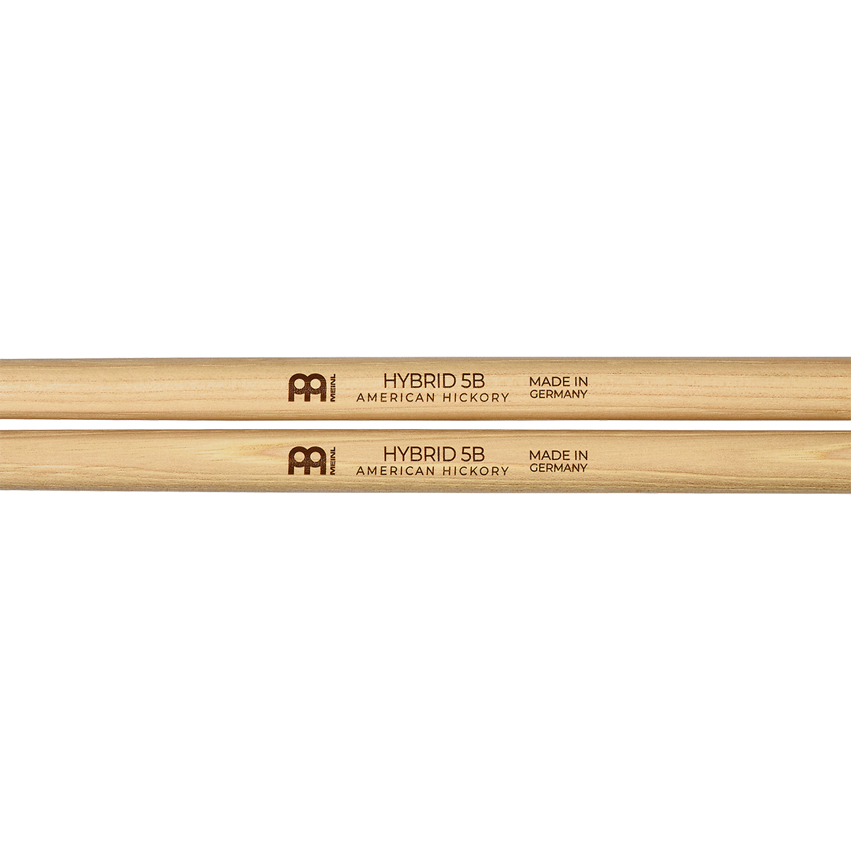 Baquetas 5B, serie Hybrid, punta híbrida, fabricadas con nogal americano, peso y tono a juego, largo: 16.25” pulgadas (41.3 cm), diámetro: 0.595” pulgadas (15.1 mm), longitud cónica larga.