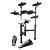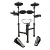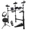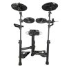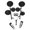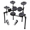 1 pad de tarola de doble zona de 7.5″.3 pads de 7.5″ para toms de aire y de piso.2 pads de platillo de 10″ con choke para crash y ride.1 pad de platillo de 10″ para hi-hats.1 pedal para controlar bombo.1 rack de batería de 4 patas con todos los soportes, hardware y cableado invisible.Llave de batería, tiras de gestión de cables y un par de baquetas