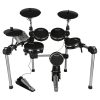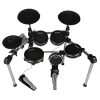 1 módulo de sonido Commander 500.1 pad de malla para bombo de 8″ pulgadas con pedal.1 pad de malla de doble zona y rimshot para tarola.3 pads de tom de doble zona de 8″ pulgadas.1 pad de platillo de 10″ pulgadas para Hi-Hat.2 pads de platillo de doble zona con choke para Crash y Ride.1 controlador de pedal para Hi-Hat.1 rack de 4 patas de altura ajustable.1 par de baquetas con soporte para baquetas.