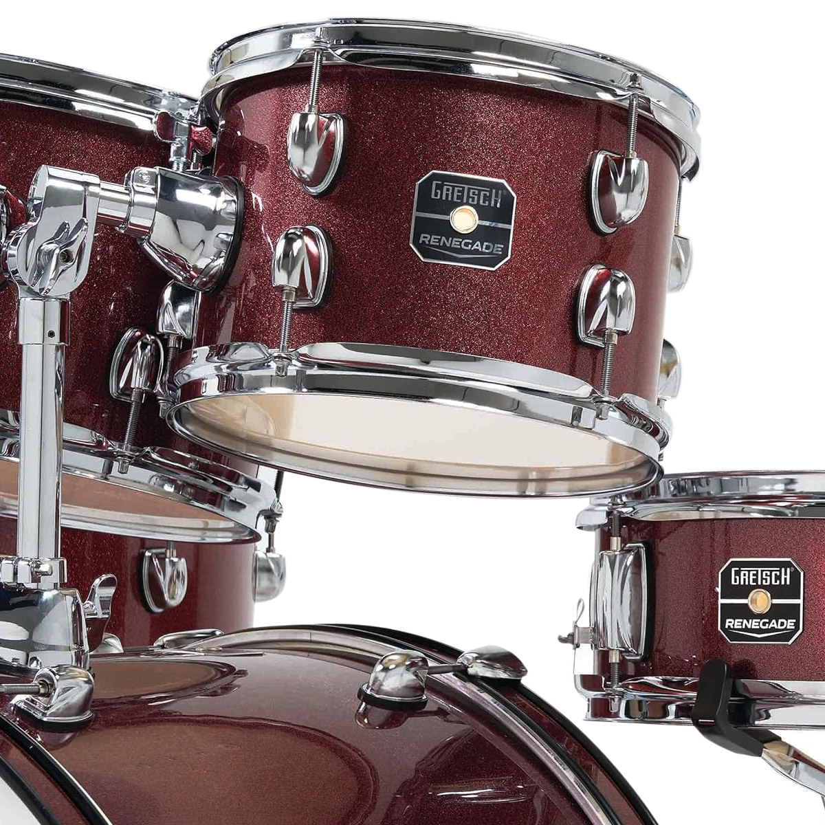 La nueva serie Renegade de Gretsch de cinco tambores con cada pieza de hardware, incluido un pedal de bombo, un soporte para hihat, un soporte para tarola, un soporte recto para platillos, un banco y un par de baquetas. También se agrega un juego de platillos de latón.Renegade está disponible en cuatro colores diferentes: Gris Sparkle, Ruby Sparkle, Azul Sparkle y Negro Mist.• Bombo de 22”x16”, Toms de 10”x7” y 12”x8”, Tom de piso de 16”x14” y Tarola de 14”x5”• Hardware: Pedal de Bombo, Atril de Hihat, Atril de Tarola, Atril recto de Platillo y Banco• Platillos: Hihat de 13”, Crash Ride de 15”• Clásicos Lugs Gretsch de Rango Completo• El icónico logo de Gretsch impreso en el Parche de Bombo