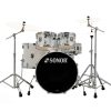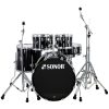Bombo de 20″ x 16″ con sistema de montaje de toms.Tom de aire de 10” x 7”.Tom de aire de 12” x 8″.Tom de piso de 14″ x 13″.Tarola de 14″ x 6″.