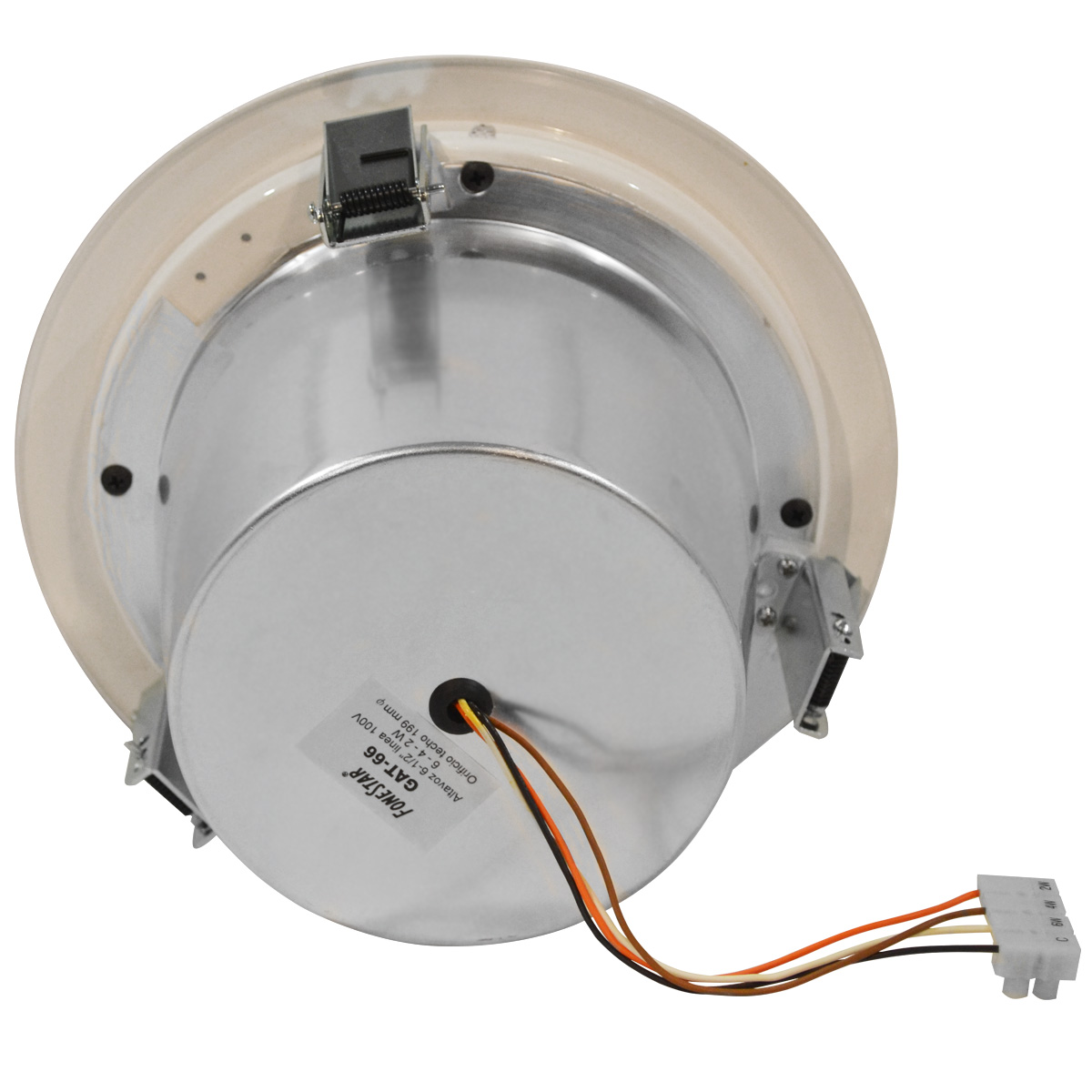 Altavoz de techo con transformador de línea 100 V, rejilla redonda y caja antifuego.