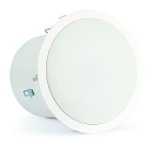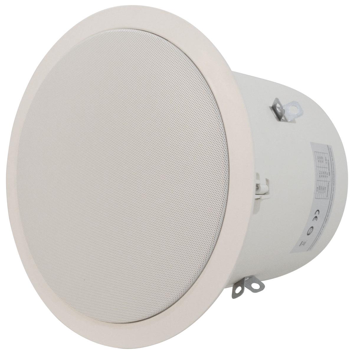 Altavoz de techo subwoofer con transformador de línea 100 V y baja impedancia, rejilla redonda y caja anti fuego.Sistema de radiación bass reflex.Refuerzo de graves en instalaciones de línea 100 V.