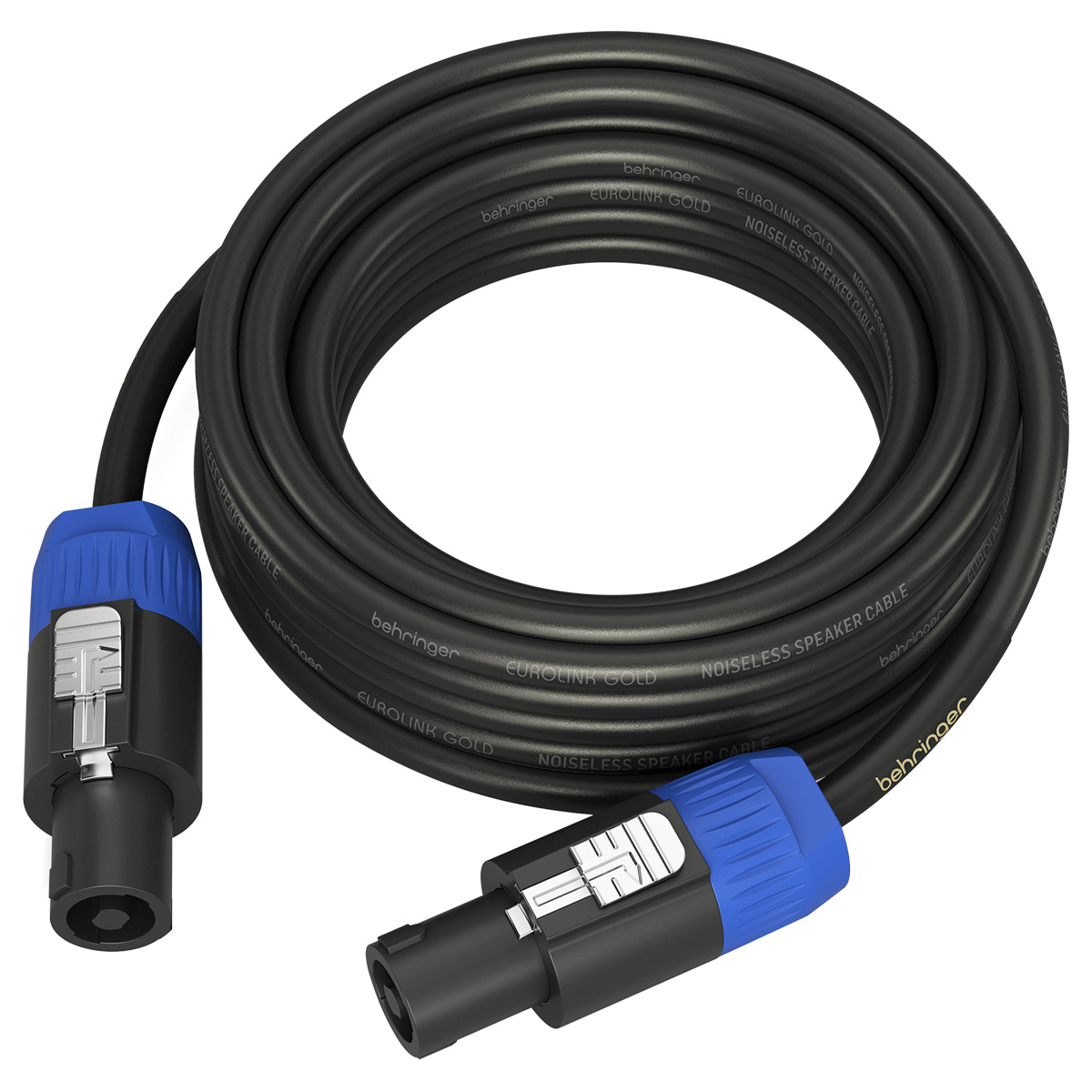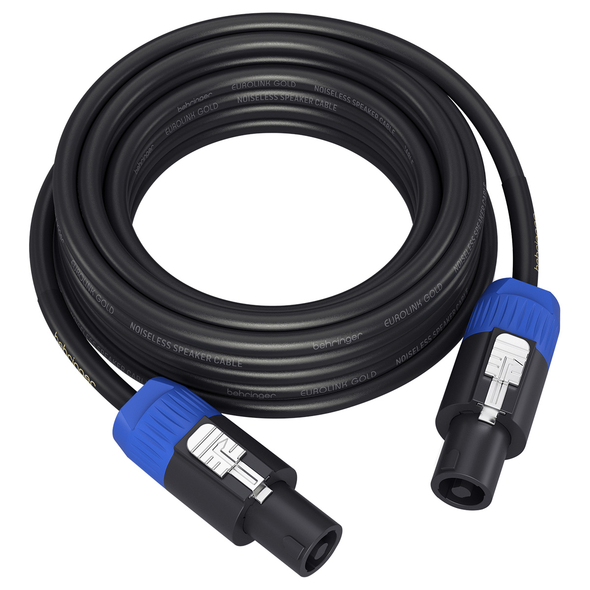 Cable para altavoces PA y gabinetes de altavoces graves, 10 metros, libre de oxígeno para mayor respuesta y dinámica, baja capacitancia con núcleo de cobre para transmisión de señal pura, cable flexible de 2 x 1.5 mm² con revestimiento de cable probado en etapas para una transmisión de señal sin ruido, conectores giratorios de altavoz con carcasa de PVC para una durabilidad excepcional, 7.8 mm de diámetro con funda aislante y máxima durabilidad, incluye brida de gancho y loop con soporte de metal.