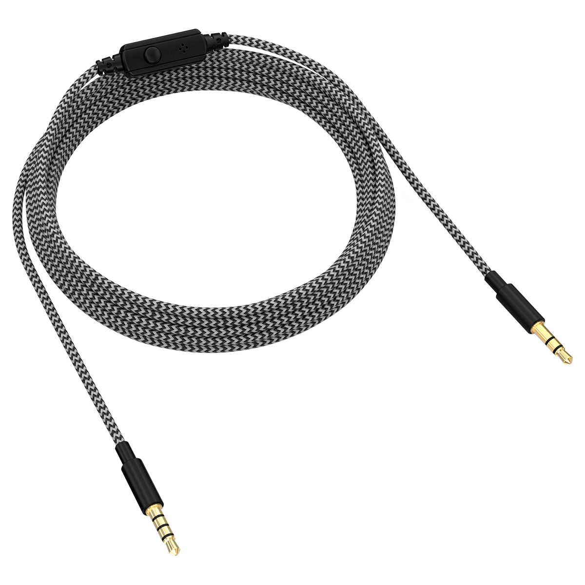 Cable de extensión de audio para audífonos premium con micrófono integrado, 2 metros de longitud, actualiza tus audífonos favoritos con un micrófono en línea para una VoIP clara, conferencias telefónicas, e-learning y juegos, el diseño de micrófono con cancelación de ruido súper sensible proporciona una excelente claridad vocal, switch de control de música incorporado para reproducir, pausar y cambiar pistas, el cable trenzado de alta calidad proporciona una gran durabilidad a largo plazo, conectores chapados en oro para un rendimiento de audio de alta calidad, conector TRS de 3.5 mm y conector TRRS de 3.5 mm, compatible con la mayoría de las computadoras, smartphones y otros dispositivos de comunicación, respuesta de frecuencia: 50 Hz a 10 kHz, directividad omnidireccional.