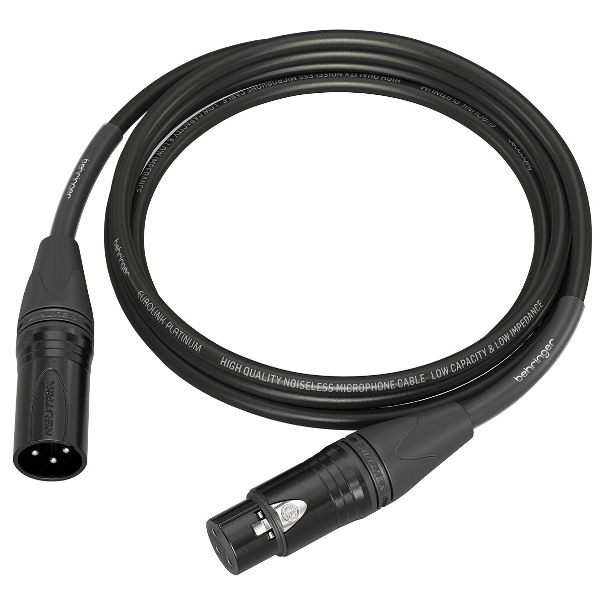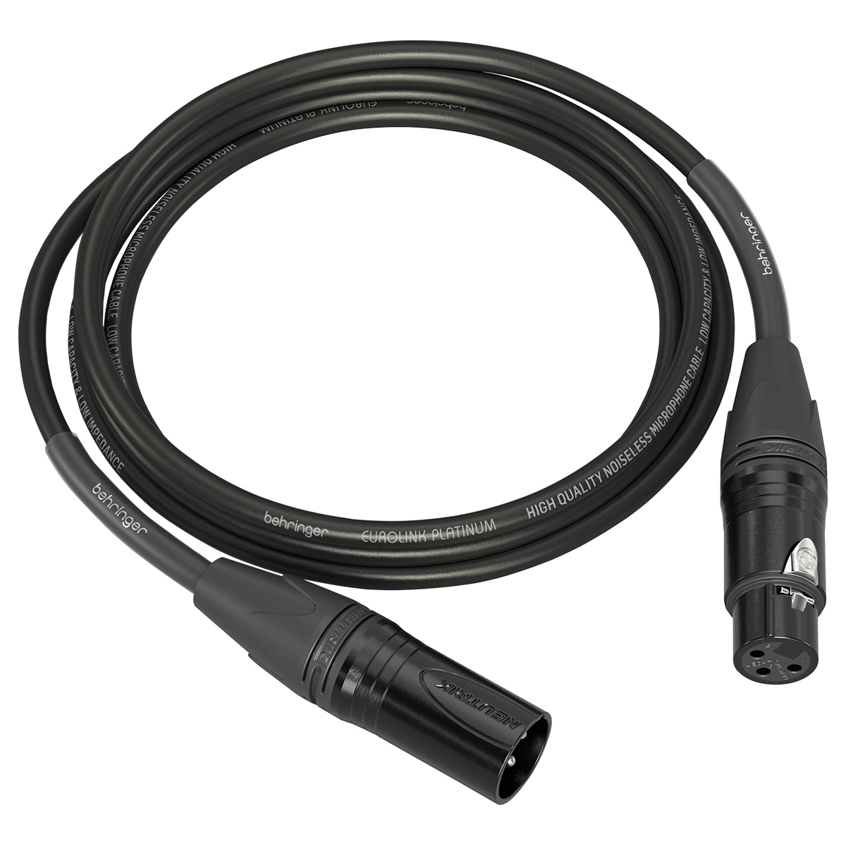 Conectores Neutrik XLR negros con puntos de contacto superiores y carcasa de metal para una durabilidad excepcional. Anillo de codificación de color y casquillo de goma para gestión visual de cables.