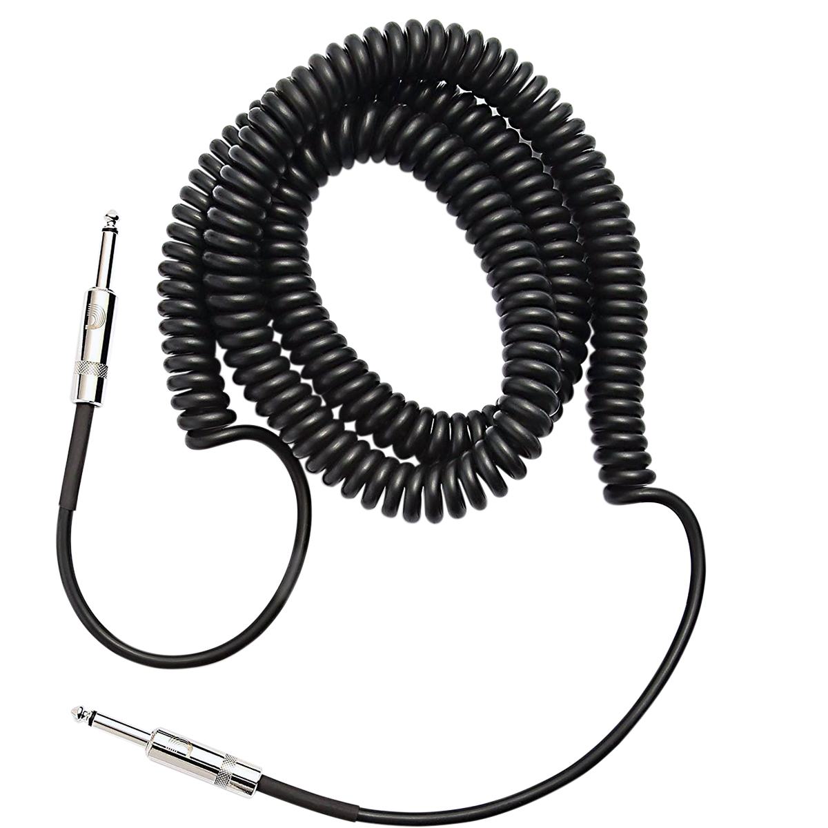 Cable en espiral para instrumento, serie Custom, longitud de 30 pies (9.1 metros), capacitancia adicional para un tono ligeramente más cálido, domina las altas frecuencias de instrumentos con pastillas single coil pasiva o con humbucker, conductor de cobre coaxial libre de oxígeno con dos capas de blindaje, alivio de tensión superior para alto rendimiento, plugs niquelados, cálido tono ”vintage”.