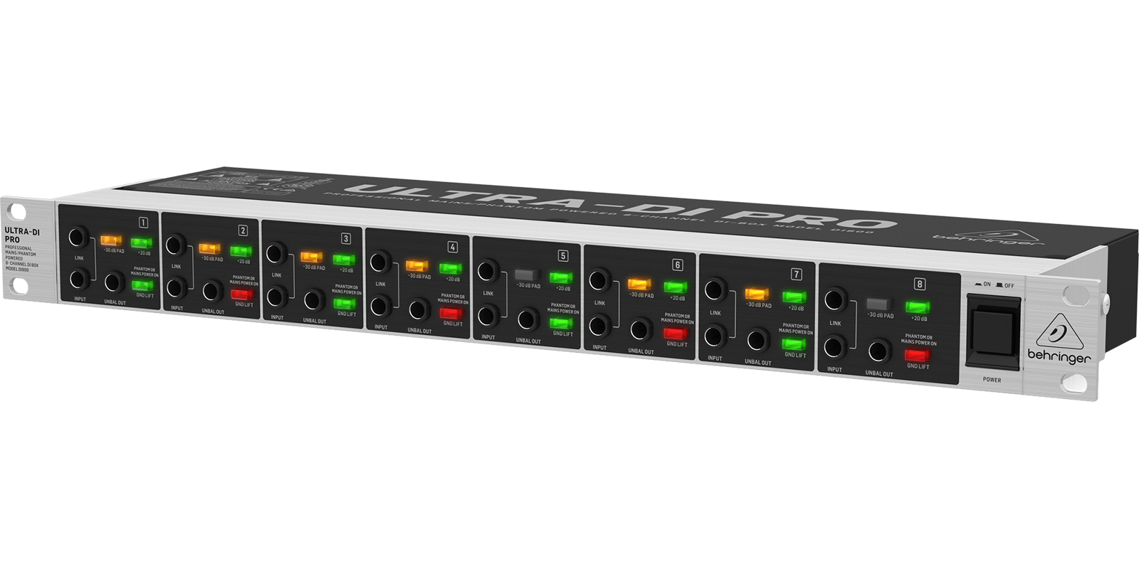 Entrada: 8 entradas TS 1/4″, desbalanceado.Tipo: DC-Desacoplado.Impedancia: 350 kilo-ohms.Nivel de entrada máximo: +18 dBu / +48 dBu (-30 dBu pad depressed).