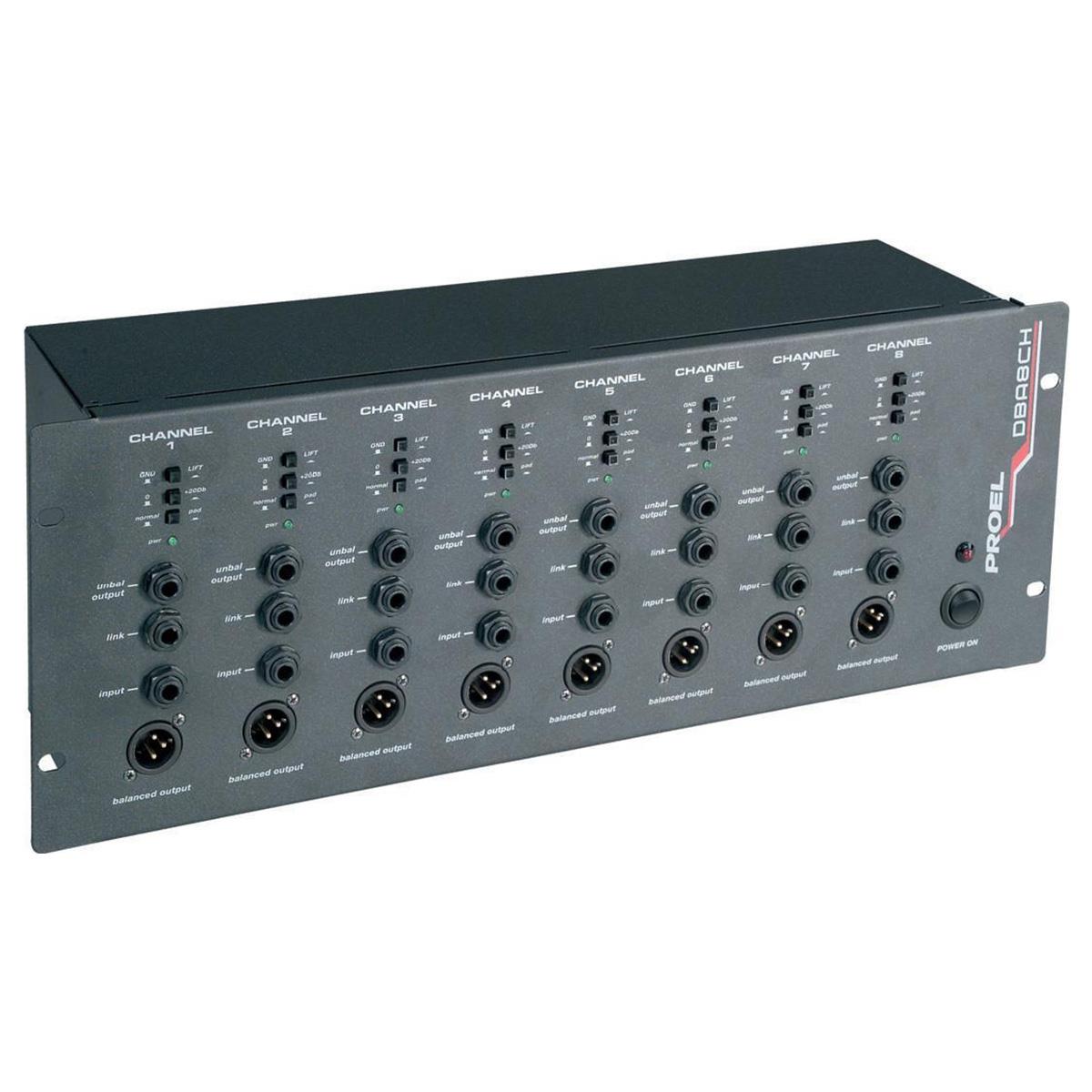 8 XLR de 3 pines.8 jack 1/4″ desbalanceado.8 link jack 1/4″.