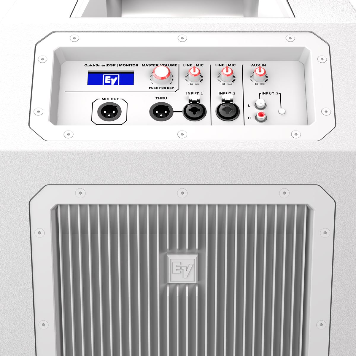 Calidad de audio EV legendaria a través de 8 drivers de neodimio de rango completo de 3.5″ pulgada y un subwoofer de 12″ pulgadas, impulsado por un amplificador de 3 canales para un alto rendimiento. Los componentes y la afinación de vanguardia brindan un sonido de tamaño completo en un formato plug and play súper optimizado.