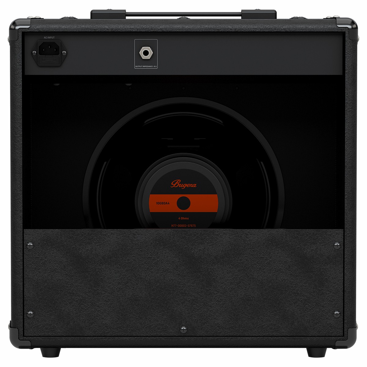 Combo para guitarra, estado sólido, 40 watts de potencia, 2 canales independientes con todas las funciones, desde limpios brillantes hasta overdrive de alta ganancia súper graso, revolucionaria tecnología VTC (Virtual Tube Circuit) que reproduce el tono, tacto y la sensación de un bulbo real, potente ecualizador de 3 bandas con graves, medios y agudos que proporciona una forma de tono desenfrenada para marcar cualquier sonido que necesites, el canal limpio cuenta con control de nivel independiente que varía desde un brillo prístino hasta un grueso cálido, perfecto para recuperar tonos vintage, cleans modernos o usarlo como una solución de plataforma de pedal, el canal overdrive con controles de nivel y ganancia independientes abarca desde un drive clásico hasta una saturación moderna de alta ganancia ideal para tonos lead, rock y metal, entrada footswitch para cambio de canal remoto durante un show en vivo, real Spring Reverb con control de nivel ajustable, altavoz Bugera personalizado de 10” pulgadas, ideal para ensayo, conciertos y grabaciones caseras, salida de audífonos con simulación de altavoz integrada para sesiones de práctica perfectas sin molestar a los vecinos, entrada auxiliar para reproducción de música desde dispositivos externos para tocar junto con tu música favorita, salida de línea dedicada con simulación de altavoz integrada para conectarse directamente a un PA o interfaz de grabación, salida de altavoz de 8 ohms para conectar a gabinetes de guitarra externos, dimensiones: 420 x 425 x 220 mm, peso: 10 kg.