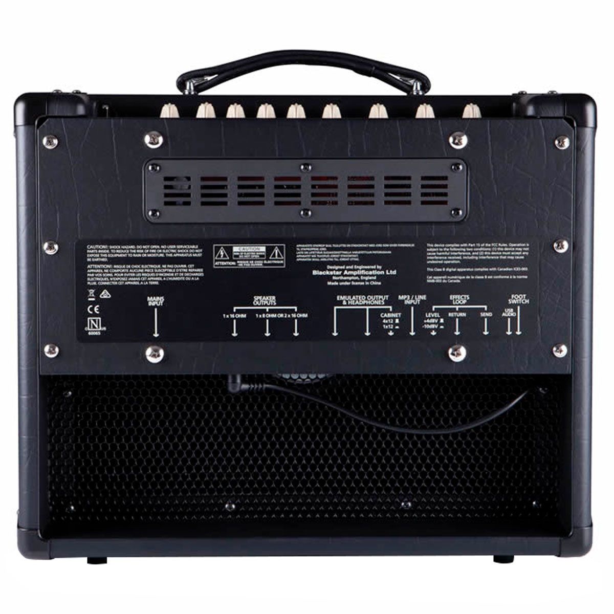 Combo de 5 watts, pre-amp de bulbo ECC83, bulbo de amplificación de potencia 12BH7, diseño único de amplificador de potencia push-pull, 2 canales, voces con interruptor para limpio y overdrive, reducción de energía a 0.5 watts, salida de audio usb, salida XLR D.I., reverbación de calidad de estudio, altavoz diseñado blackstar 1×12, interruptor de pie de 2 botones incluido