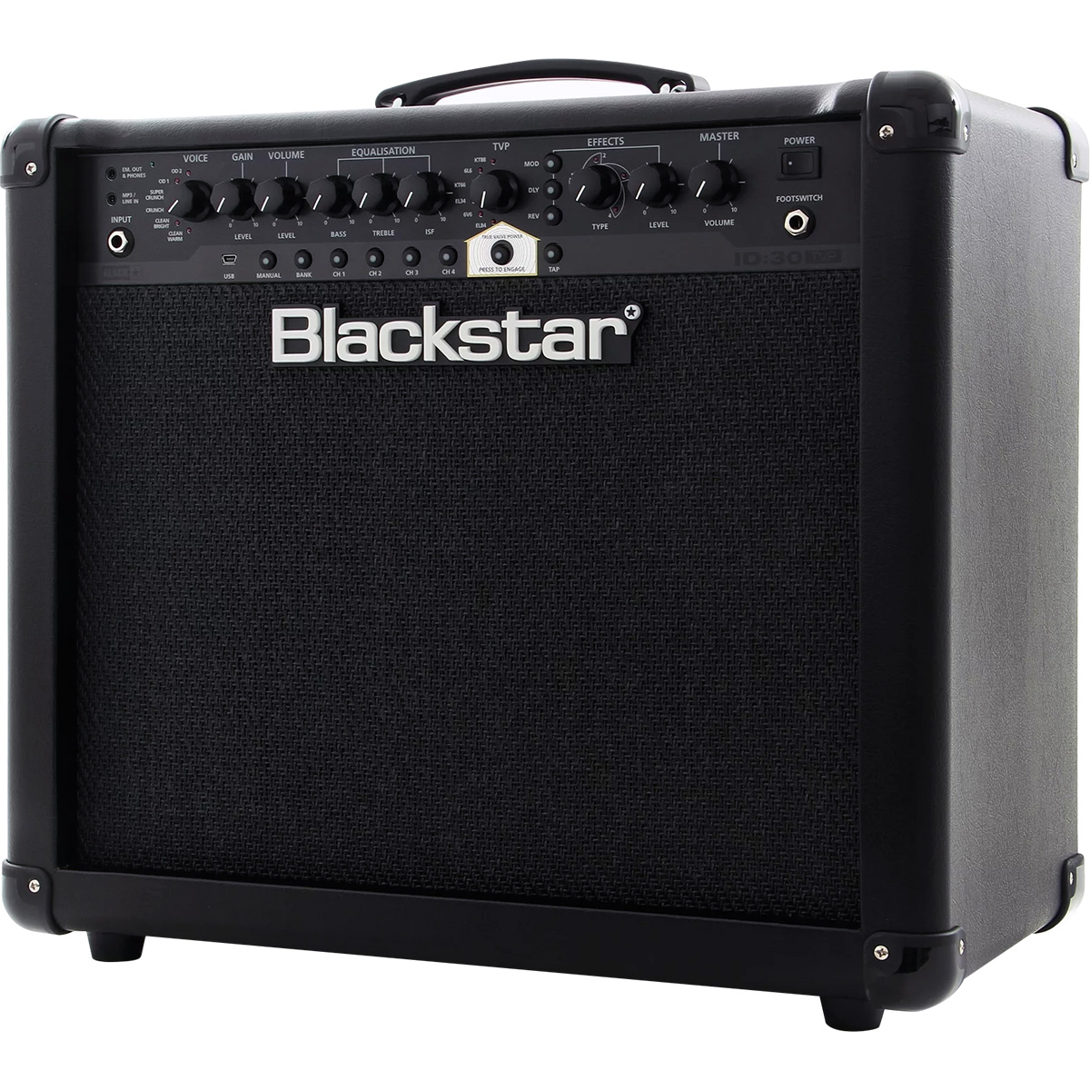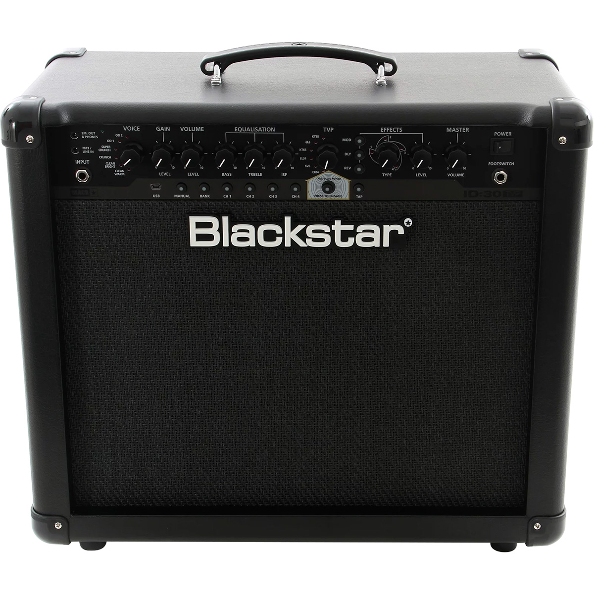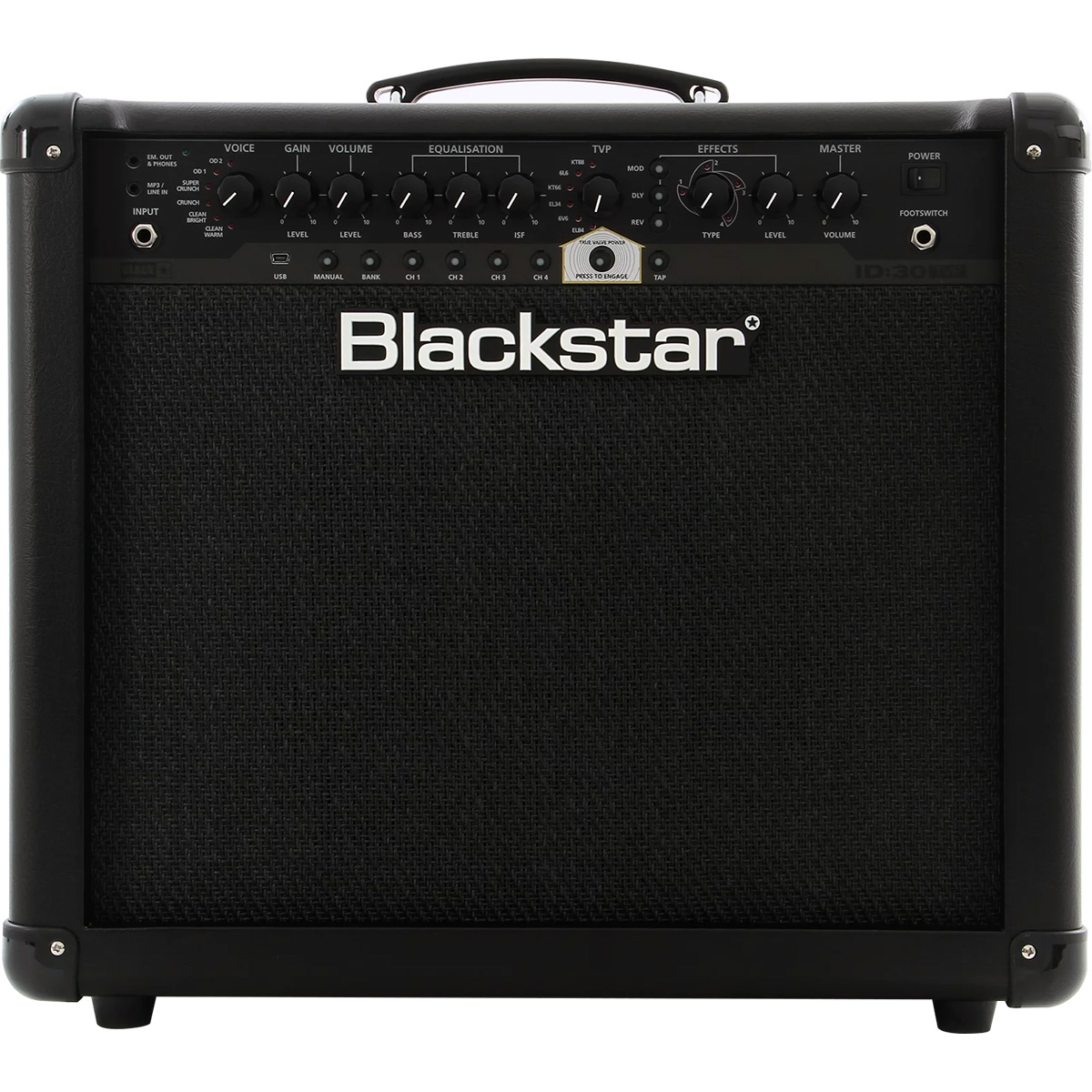 Este circuito patentado por Blackstar ofrece 6 respuestas de diferentes tipos de bulbo: EL84, 6V6, EL34, KT66, 6L6, KT88.EL84 – Bell like full bodied Clase A con mucha compresión.6V6 – Crisp Clase A con alta compresión y medios apretados.EL34 – Crunch británico clásico Clase A/B con cuerpo suave lleno.KT66 – British vintage rico y cálido biased Clase A/B.6L6 – Clase A/B dinámico apretado con agudos y graves extendidos.KT88 – Clase A/B estrecho, apretado y dinámico con fuerte low-end.Cuando se activa, proporciona la respuesta y la dinámica de un amplificador de bulbo y proporciona de forma única la misma salida de potencia acústica que un amplificador de bulbos equivalente. Esto quiere decir que por primera vez, una serie asequible de amplificadores, entregan este tipo de sonido sin compromiso en vivo.