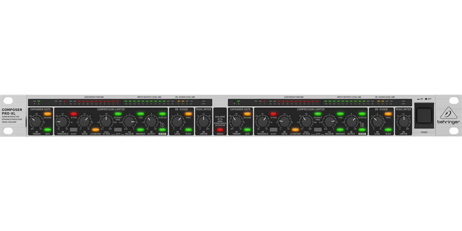 Tipo: Compresor IKA (Interactive Knee Adaptation).Threshold: -40 a +20 dB, variable.Ratio: 1:1 a 8:1, variable.Ataque / Release: Manual o automático, variable.Tiempo manual de ataque: 0.3 mseg / 20 dB a 300 mseg / 20 dB, variable.Tiempo Release manual: 0.05 seg / 20 dB a 5 seg / 20 dB, variable.Auto característica: Compresor Wave Adaptativo.Tiempo de auto ataque: Típicamente 15 mseg para 10 dB, 5 mseg para 20 dB, 3 mseg para 30 dB.Tiempo reléase automático: Típicamente 125 dB / seg, programa dependiente.Salida: -20 a +20 dB, variable.