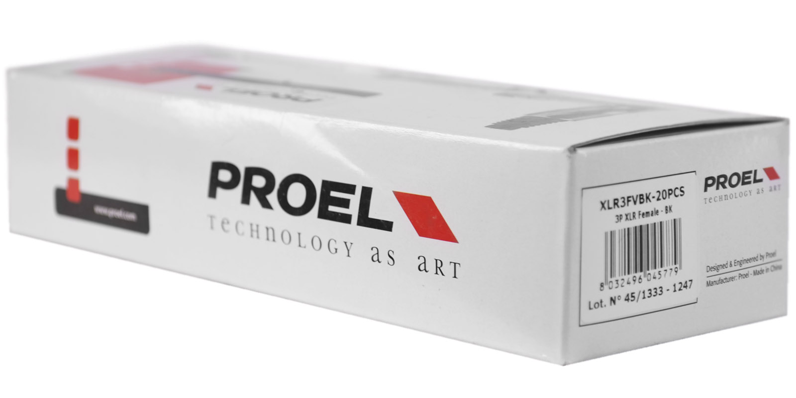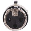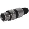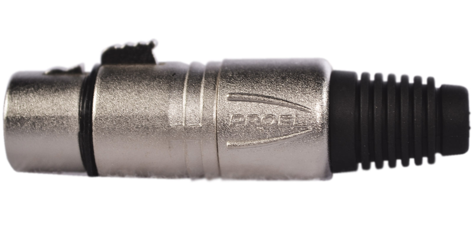 El XLR3FVPRO de Proel es un conector profesional XLR hembra de 3 polos que cuenta con un sistema interno de nylon para fijación con resorte terminal de PVC y tiene una carcasa de aluminio niquelado con un separador de PVC negro.