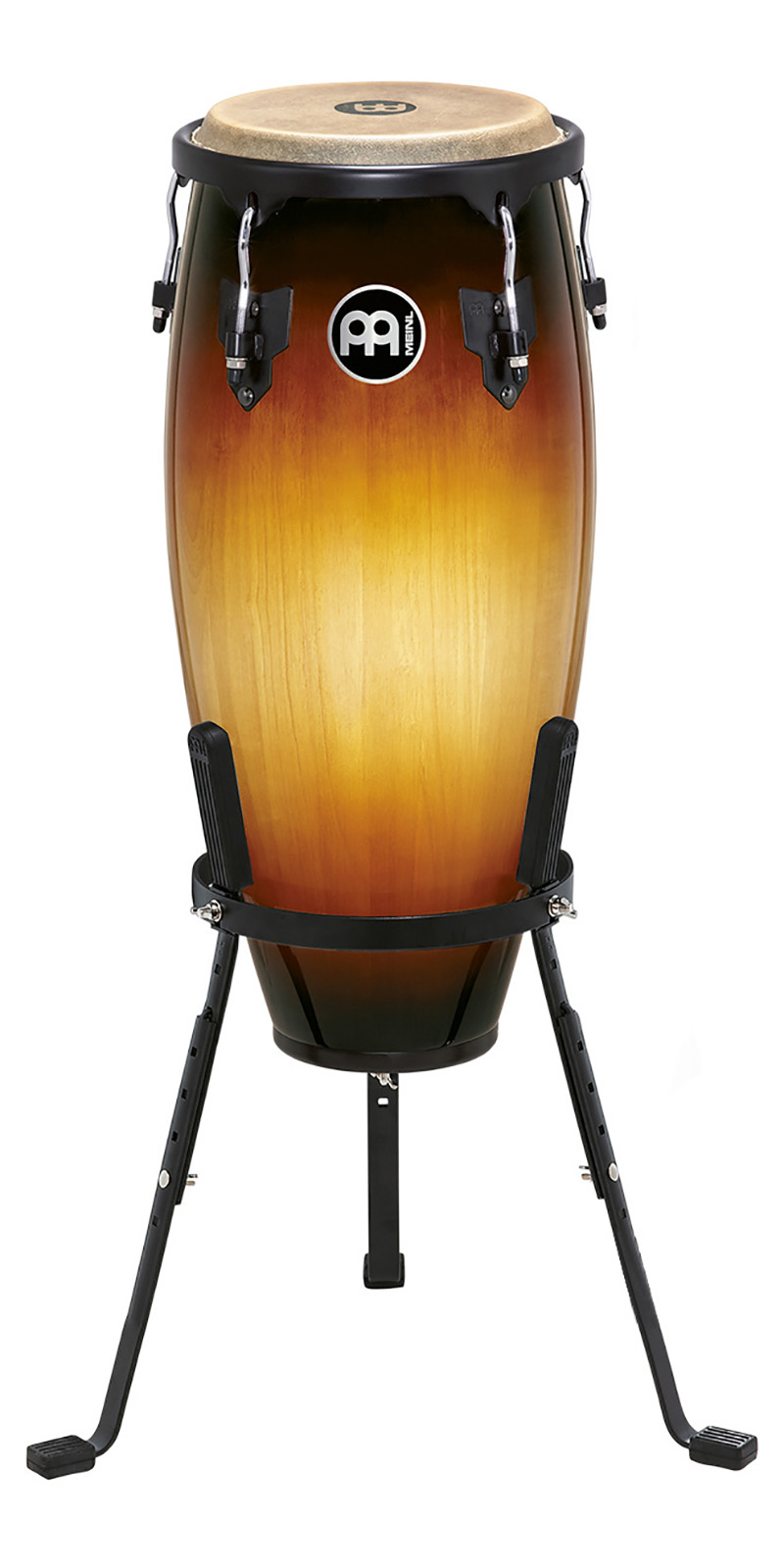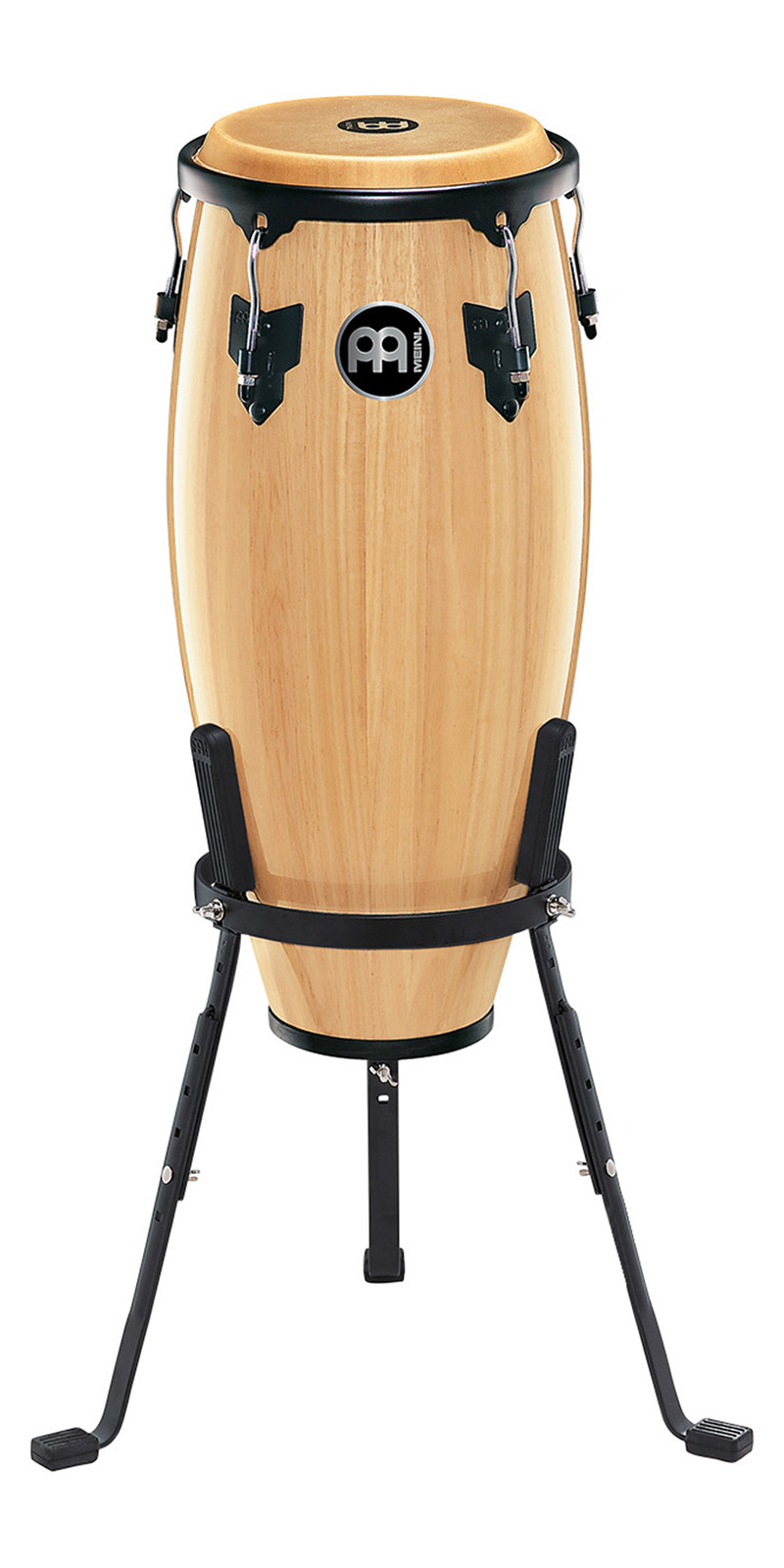 Conga Headliner de Meinl, Conga de 11” pulgadas, fabricada con madera de caucho,28” pulgadas de altura, terminada al alto brillo, parche de piel de búfalo seleccionado a mano, hardware en pintura en polvo negro, aros redondeados de 2.6 mm,lugs de afinación de 8 mm, brackets de afinación con estilo original de Meinl,incluye base tipo canasta y llave de afinación.