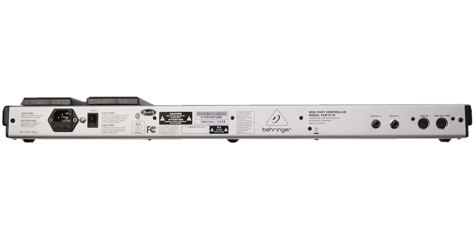 Pedal controlador ultra flexible FCB1010, función MIDI, 10 bancos de preajustes cada uno con 10 preajustes completamente editables por el usuario, 2 pedales de expresión con canal MIDI asignable libremente, número y alcance de controlador, transmisión simultánea de 5 comandos de cambio de programa MIDI y 2 controladores MIDI por presintonía, comandos de notas MIDI para aplicaciones de trigger y tap-tempo, 2 jacks de conmutación programables y controlados por relé (por ejemplo para seleccionar canales en cualquier amplificador de guitarra), se puede programar todo fácilmente estando de pie, configuración global que permite la personalización individual, función de copia de seguridad a través de MIDI SysEx, función de fusión MIDI que permite pasar y fusionar los datos del controlador y de entrada, fuente de alimentación incorporada que garantiza un funcionamiento sin problemas, dimensiones: 60 x 221 x 687 mm, peso: 4.34 kg.