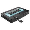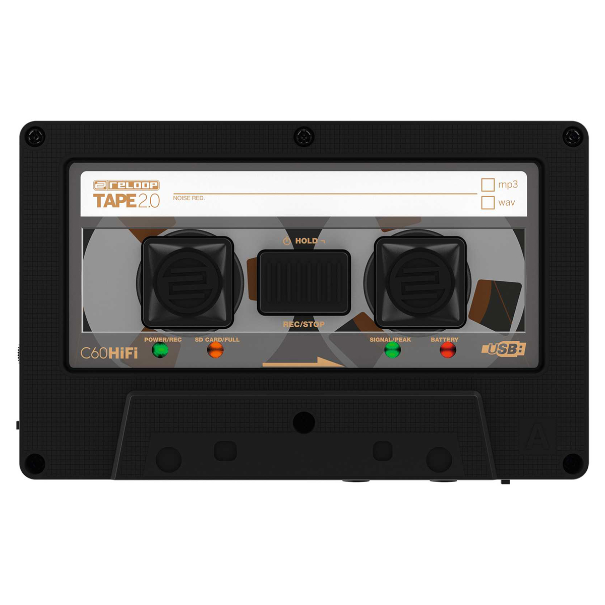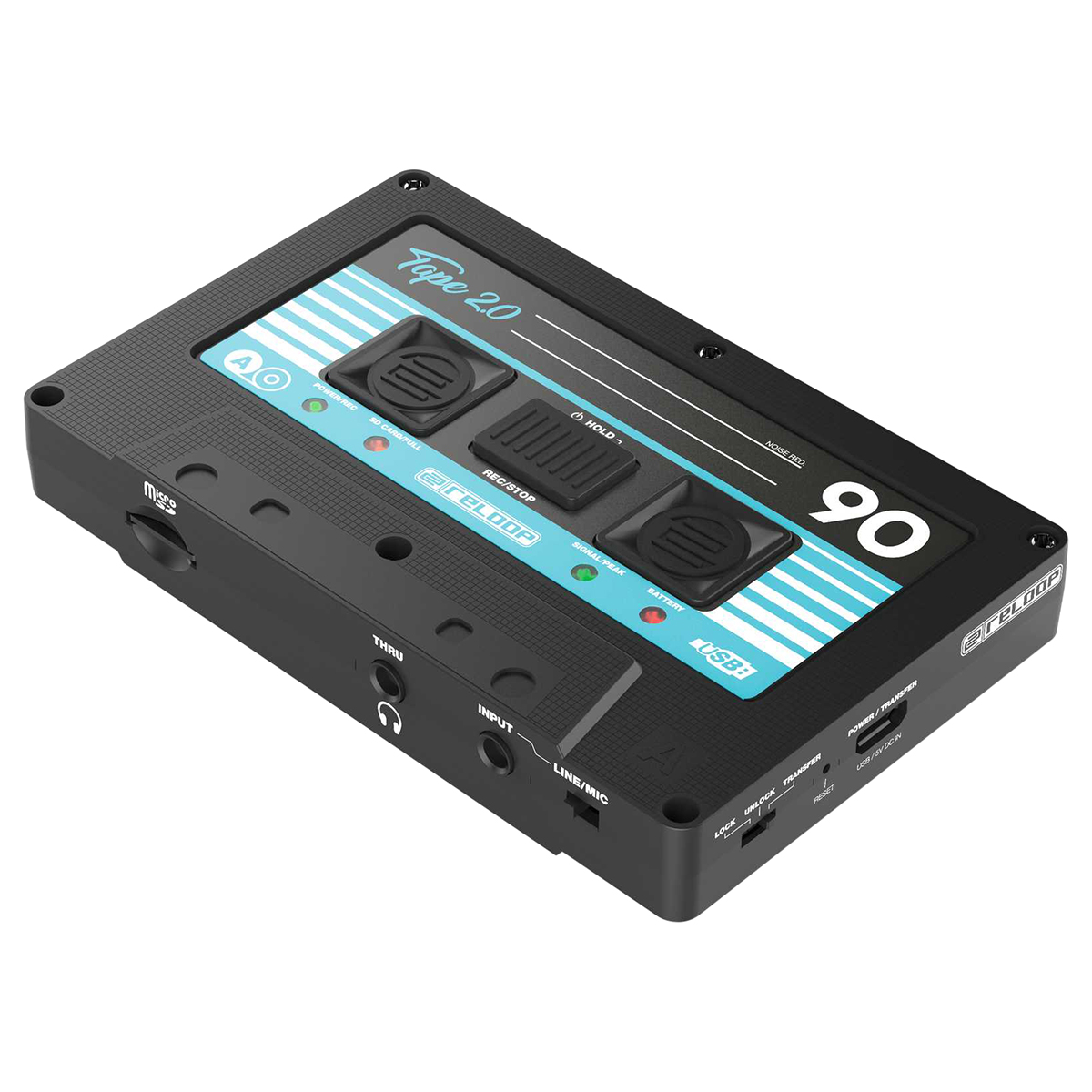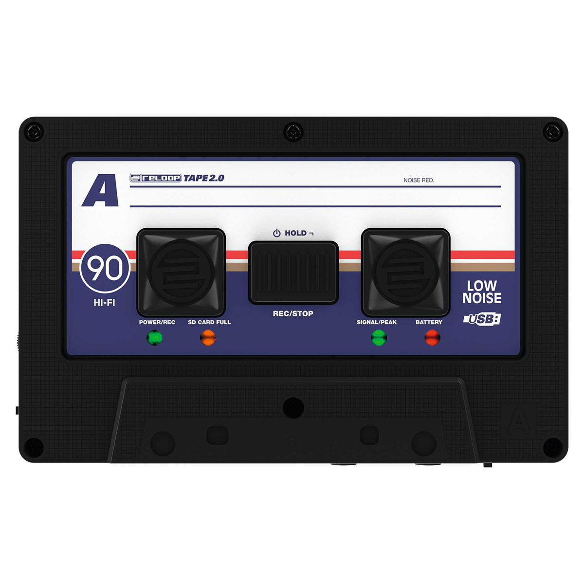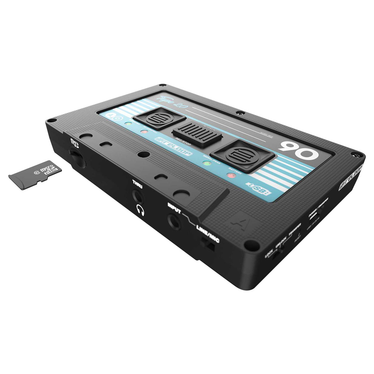 Grabador de audio portátil con aspecto de casete, graba fácilmente tu mezcla en microSD con tan sólo presionar un botón, formato de grabación seleccionable: WAV (lossles) o MP3, batería recargable integrada con hasta 6 horas de grabación activa, entrada de nivel de línea y nivel de micrófono para la conexión de mezcladoras o micrófonos dinámicos, salida THRU para monitorear o conectar audífonos o cuando hay disponible una salida REC separada, grabación a prueba de fallas sin ajustes complicados, la funcionalidad de bloqueo y desbloqueo brinda la protección contra la detención accidental durante la grabación, manejo sencillo incluso en entornos oscuros, control de ganancia de entrada, comentarios bi-LED (alimentación/REC, tarjeta SE llena, señal/pico y batería), conversores A/D de alta calidad de 24 bits, ranura HiSpeed para tarjetas microSD (se recomienda clase 10), funcionalidad del lector de tarjetas durante la conexión USB activa con una computadora, Sync Tool: Software que permite identificar grabaciones con un sello de tiempo, candado Kensington para asegurar el dispositivo, se puede cargar con cualquier adaptador de corriente móvil estándar (5V), los juegos de stickers incluidos permiten una apariencia individualizada, dimensiones: 103 x 14 x 65 mm, peso: 59 g, incluye un cable RCA a mini jack estéreo de 3.5 mm, un cable micro USB y tres juegos de stickers.