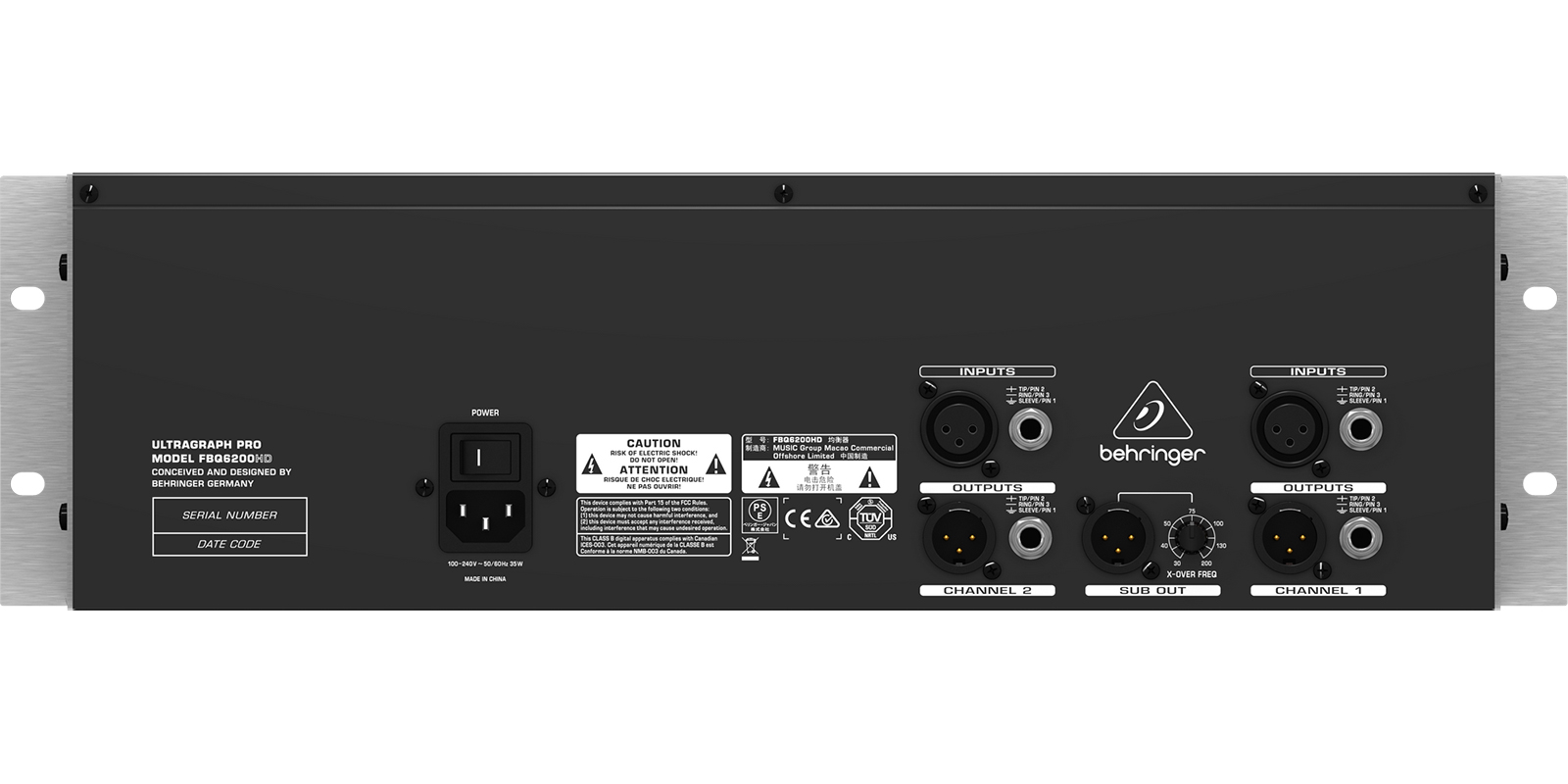 Tipo: Análogo de 31 bandas.Rango de frecuencia: 20 Hz – 20 kHz en 31 1/3 octave bandas (Frecuencias ISO).Ancho de banda: 1/3 Octava.Rango de control: ±6 dB o ±12 dB (conmutable).