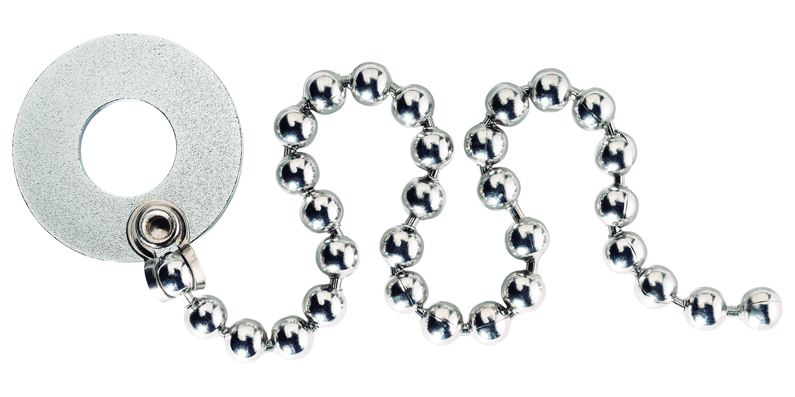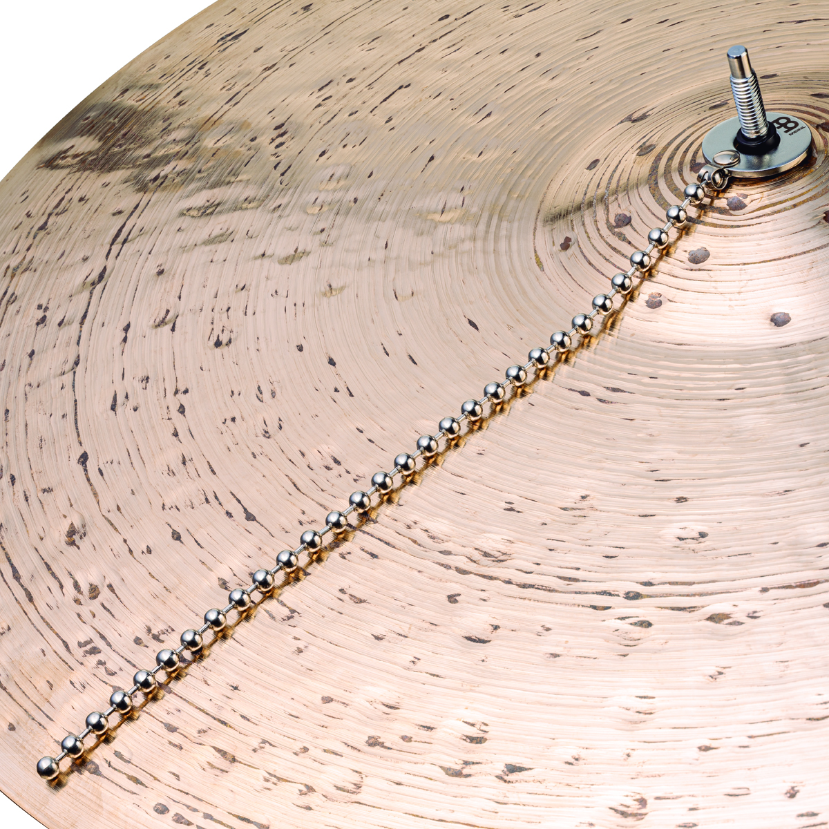 Agrega un efecto chisporroteante grande y abundante a tu platillo.Cadena de cuentas de acero inoxidable de 10.5″ pulgadas.Funciona con todos los soportes de platillos.
