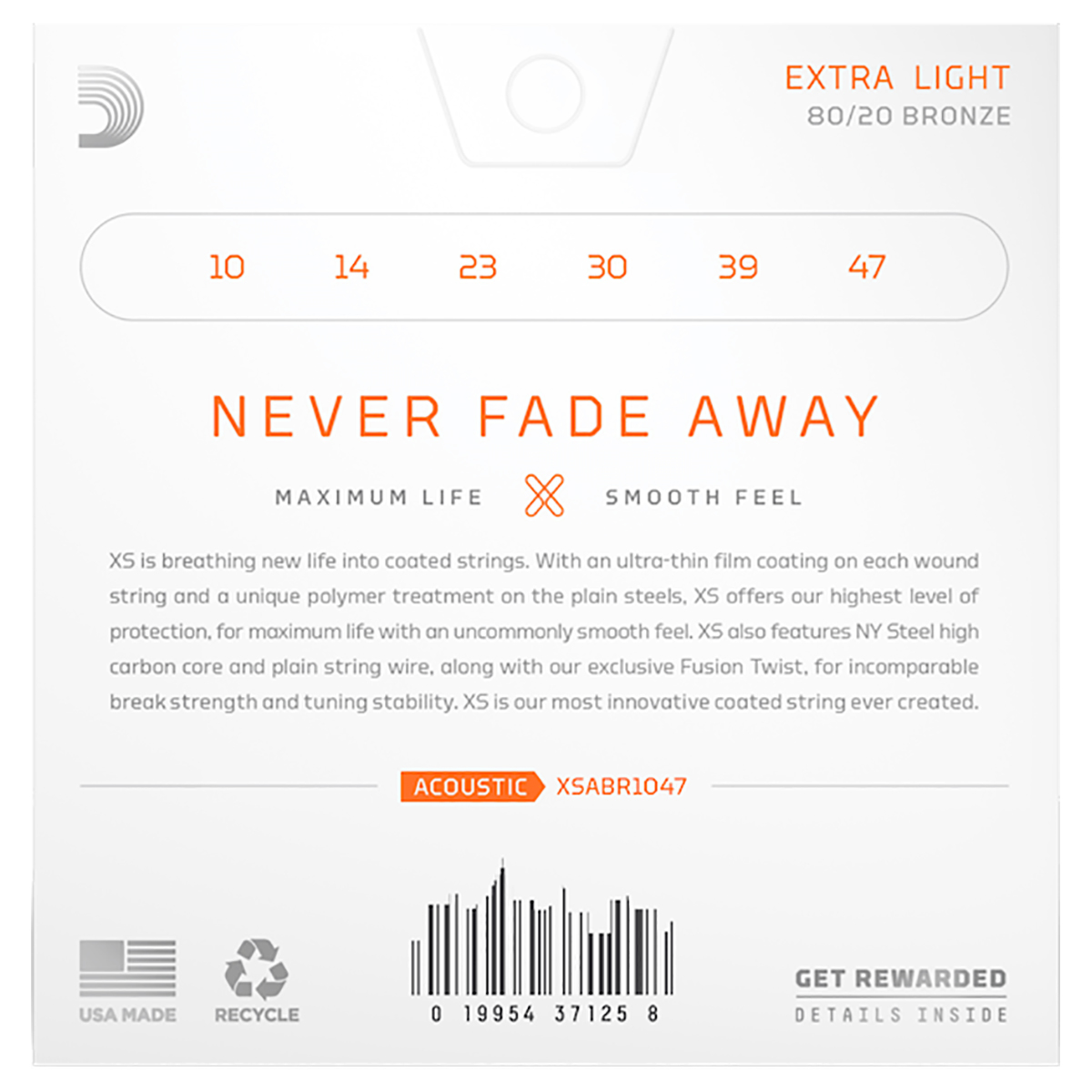 XS está dando nueva vida a las cuerdas recubiertas. Con su revestimiento de película ultra delgada en cada cuerda enrollada y un tratamiento de polímetro único en los aceros simples, XS ofrece el más alto nivel de protección para una vida útil máxima con una sensación de suavidad poco común, XS es la cuerda más innovadora jamás creada.