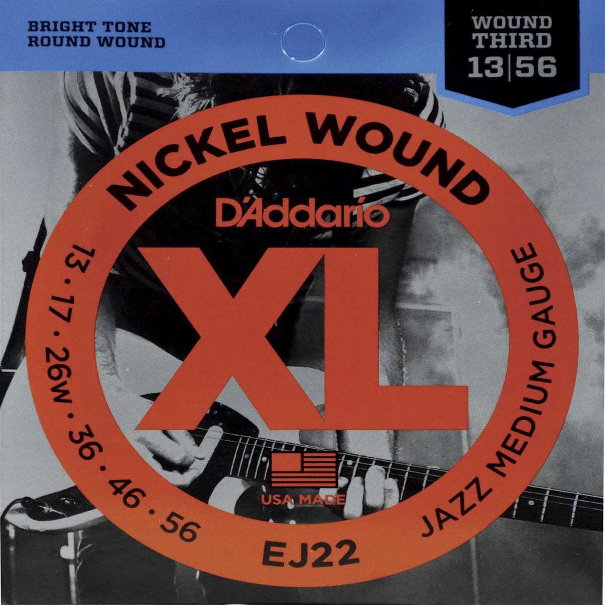 Acero liso .013, .017.Entorchado en níquel .026, .036, .046, .056.